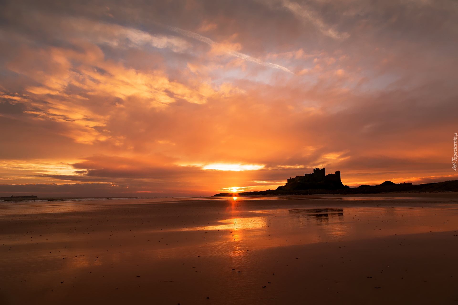 Edytor tapety: Zamek nad morzem o wschodzie słońca