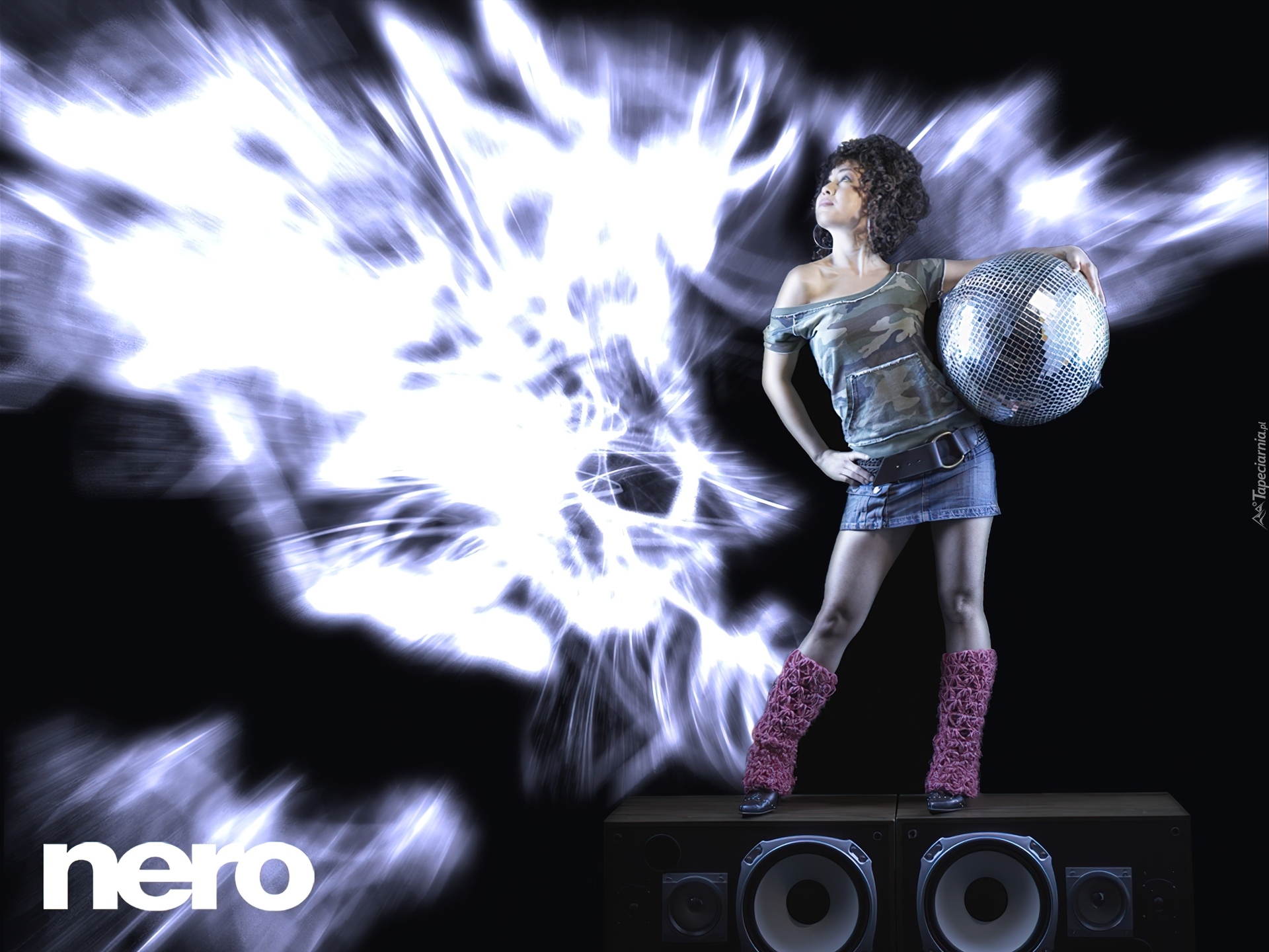 Edytor tapety: Nero, grafika, kobieta, światło, kula, program