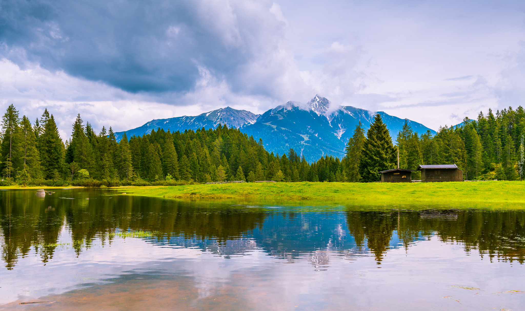 Edytor tapety: Szopy przy górskim jeziorze