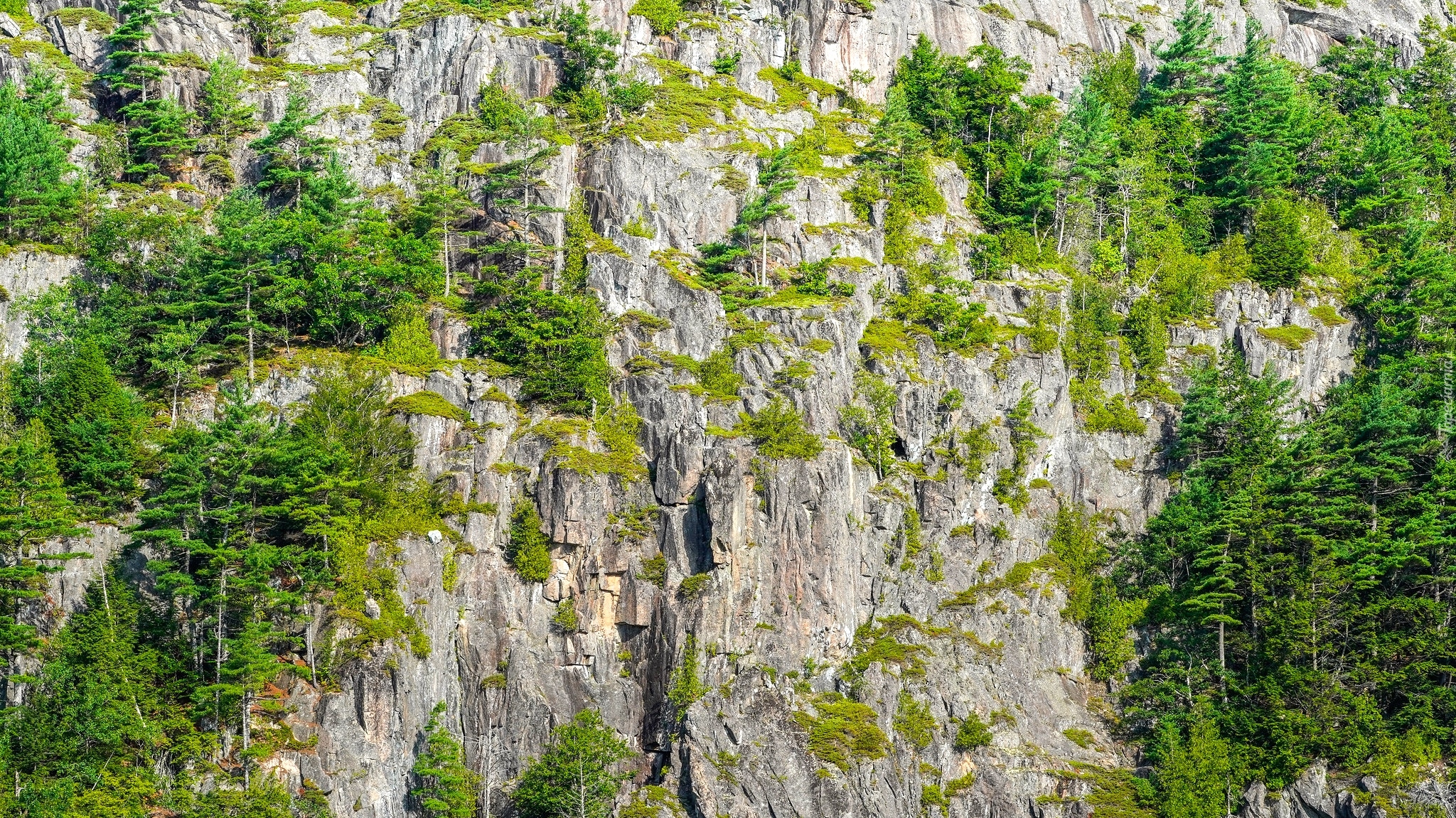 Edytor tapety: Zielone drzewa na skale