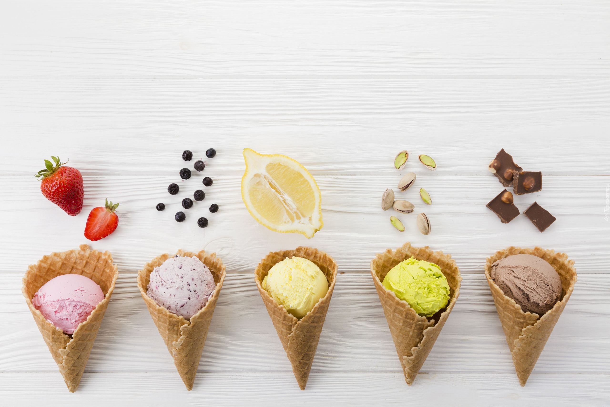 Edytor tapety: Lody w rożkach o różnych smakach
