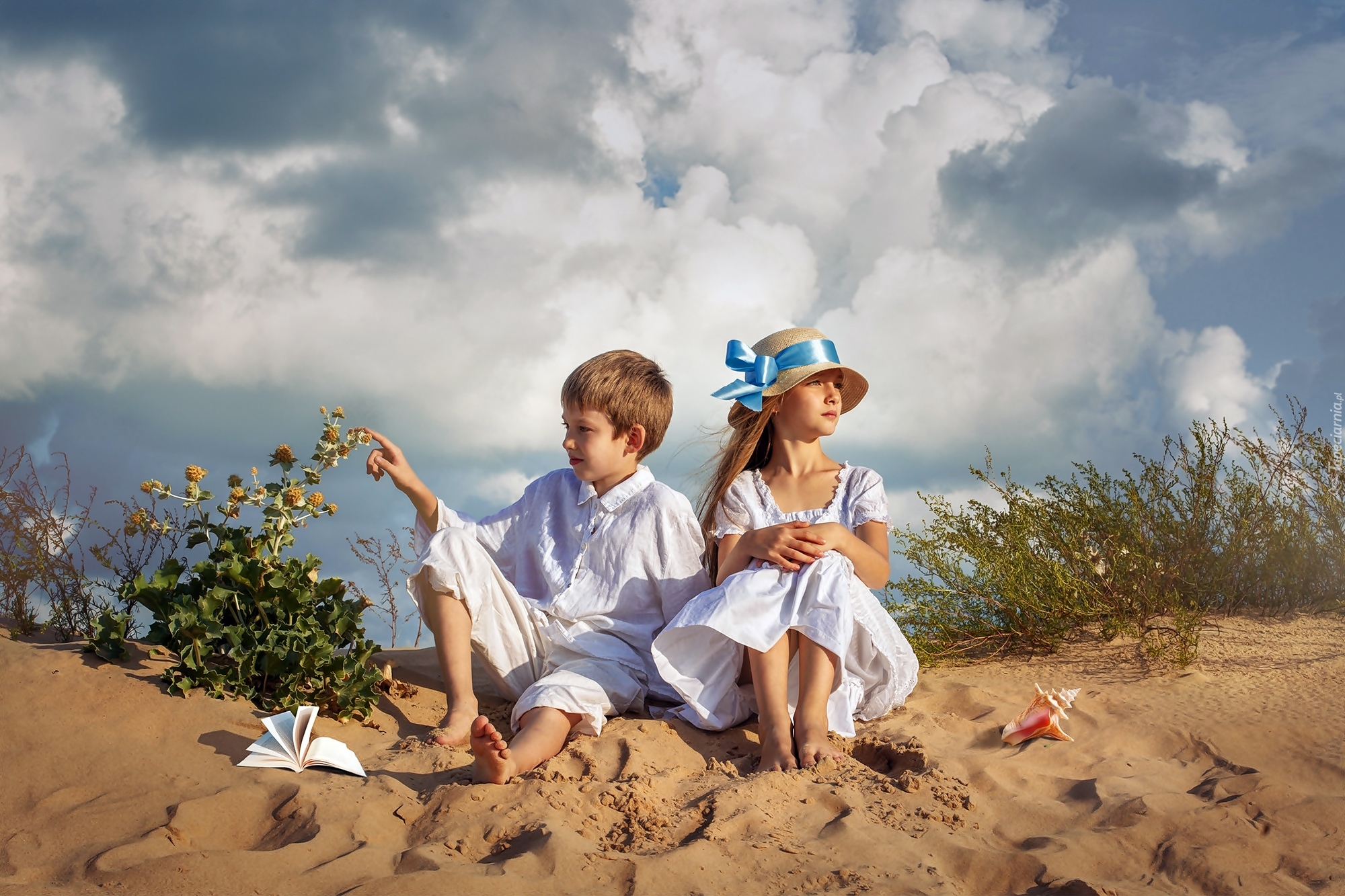 Edytor tapety: Chłopiec z dziewczynką na plaży