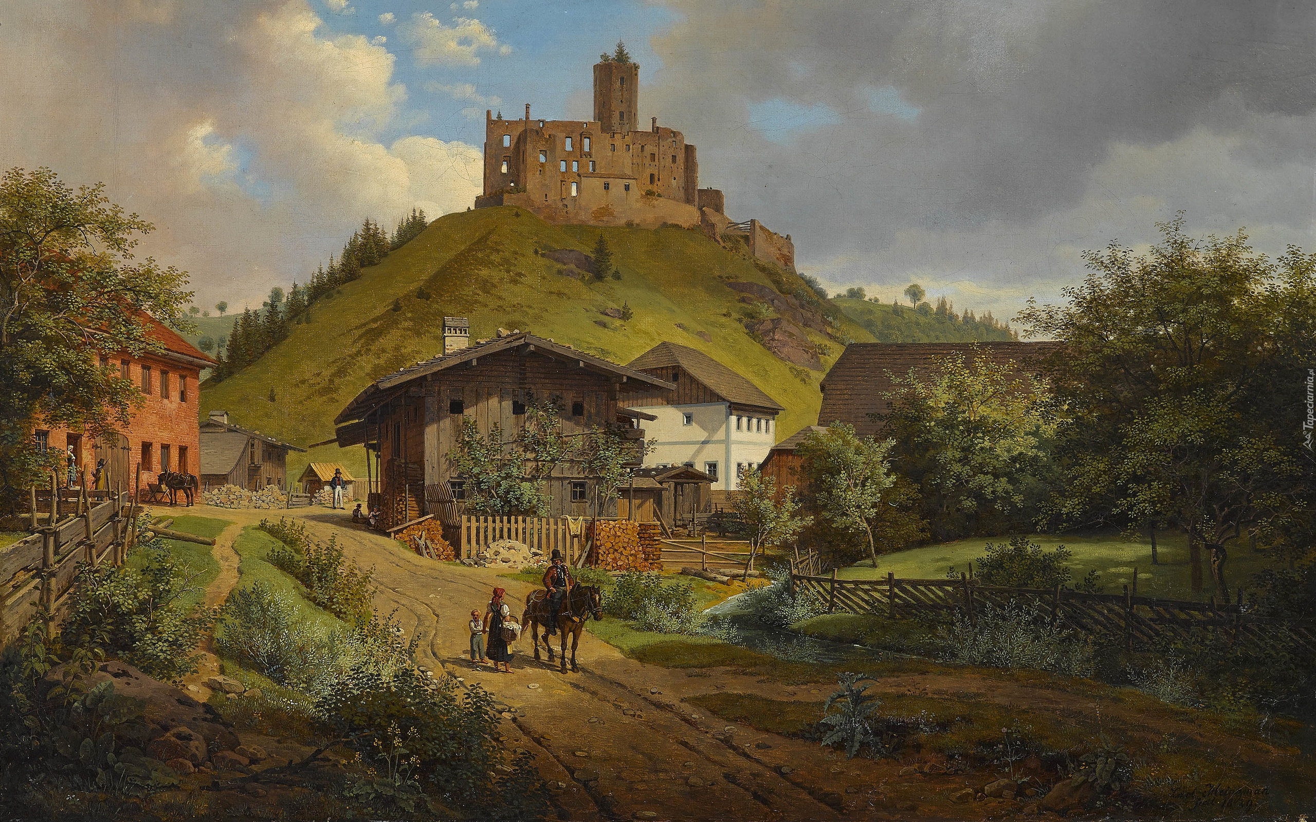 Edytor tapety: Ruiny zamku Hilgartsberg w malarstwie Carla Friedricha Heinzmanna