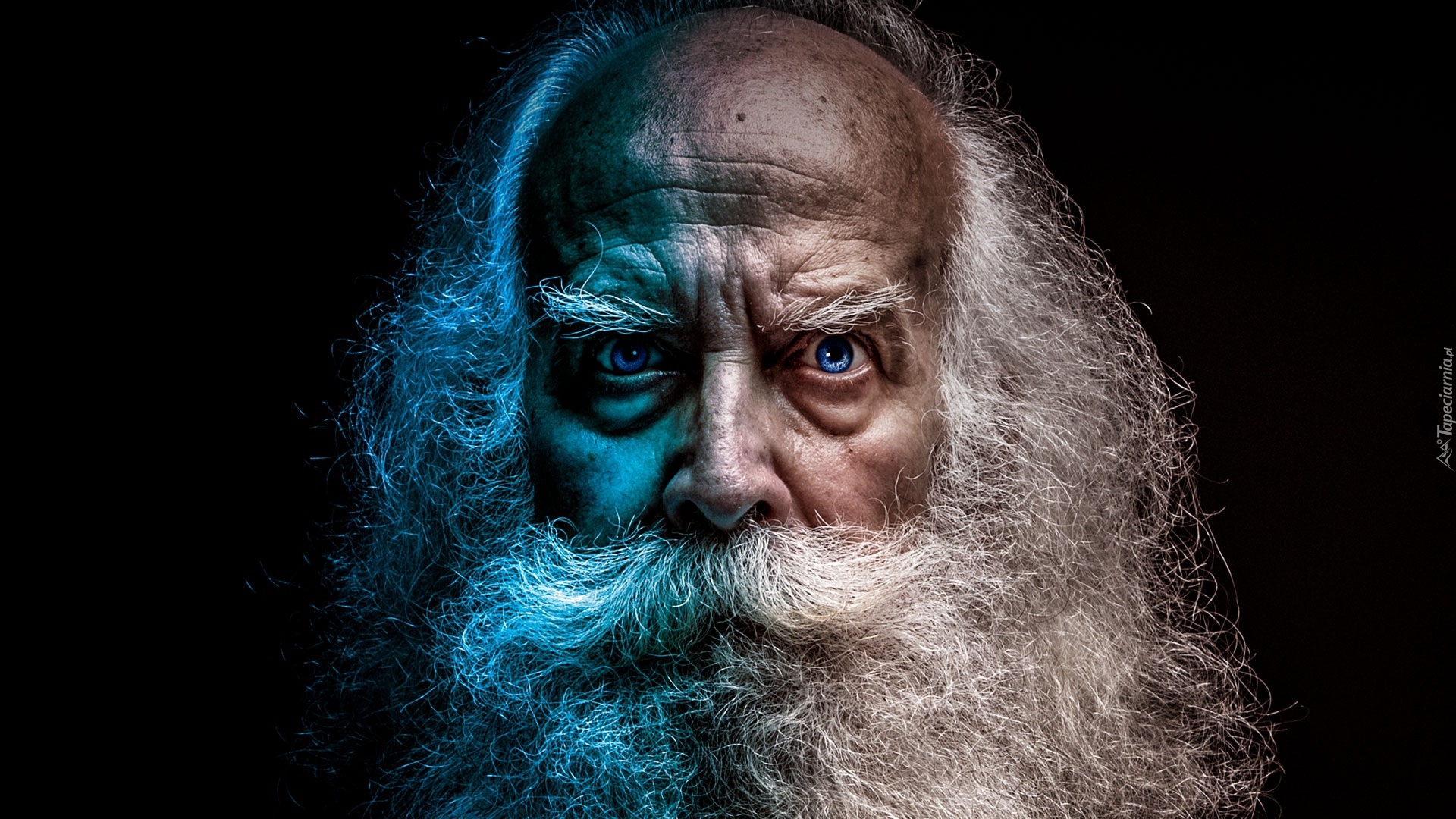 Edytor tapety: Siwowłosy mężczyzna z brodą i wąsami