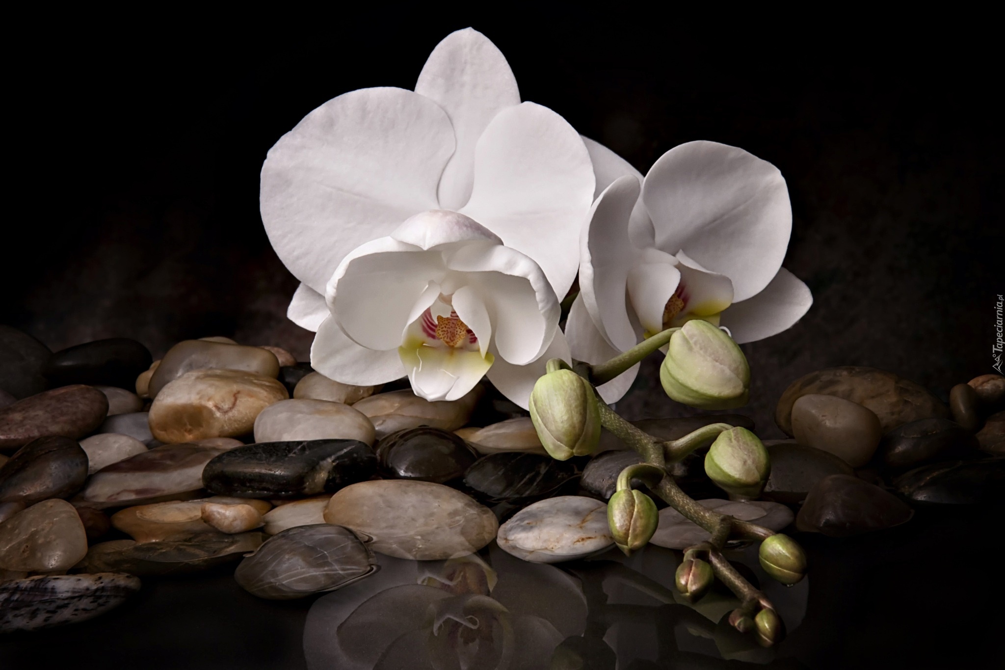Edytor tapety: Białe storczyki na kamieniach