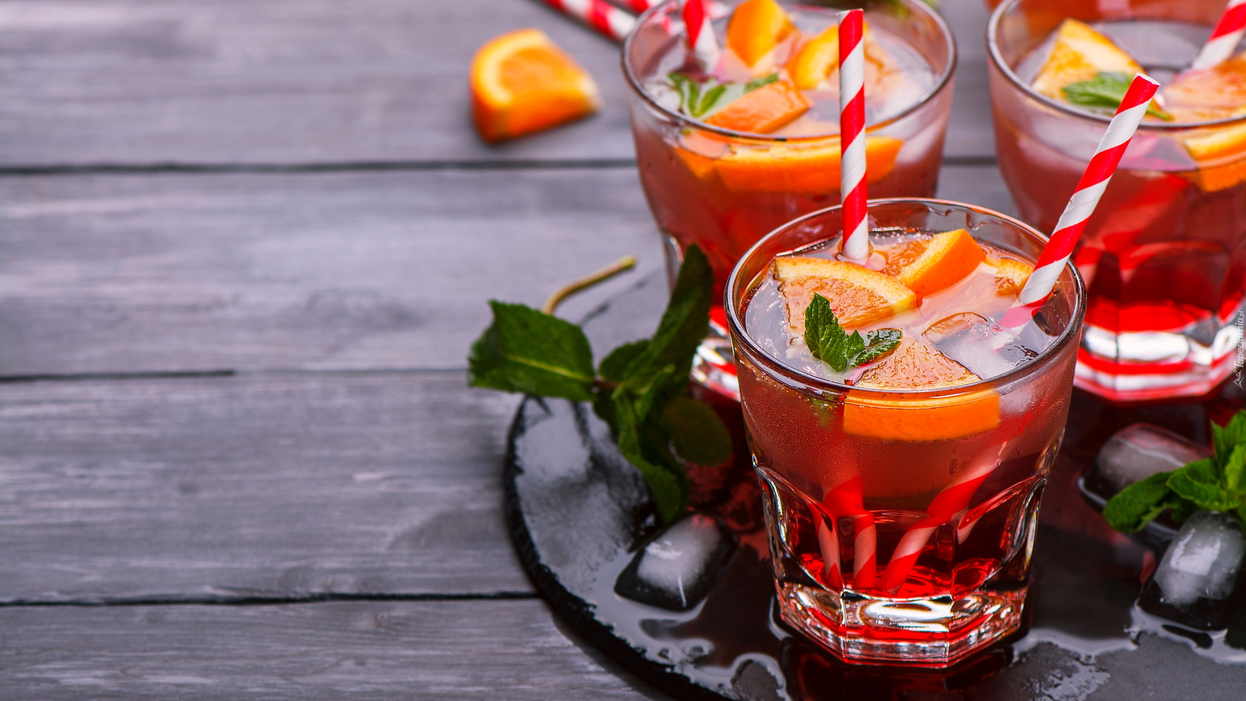 Edytor tapety: Napoje z kawałkami pomarańczy w szklankach