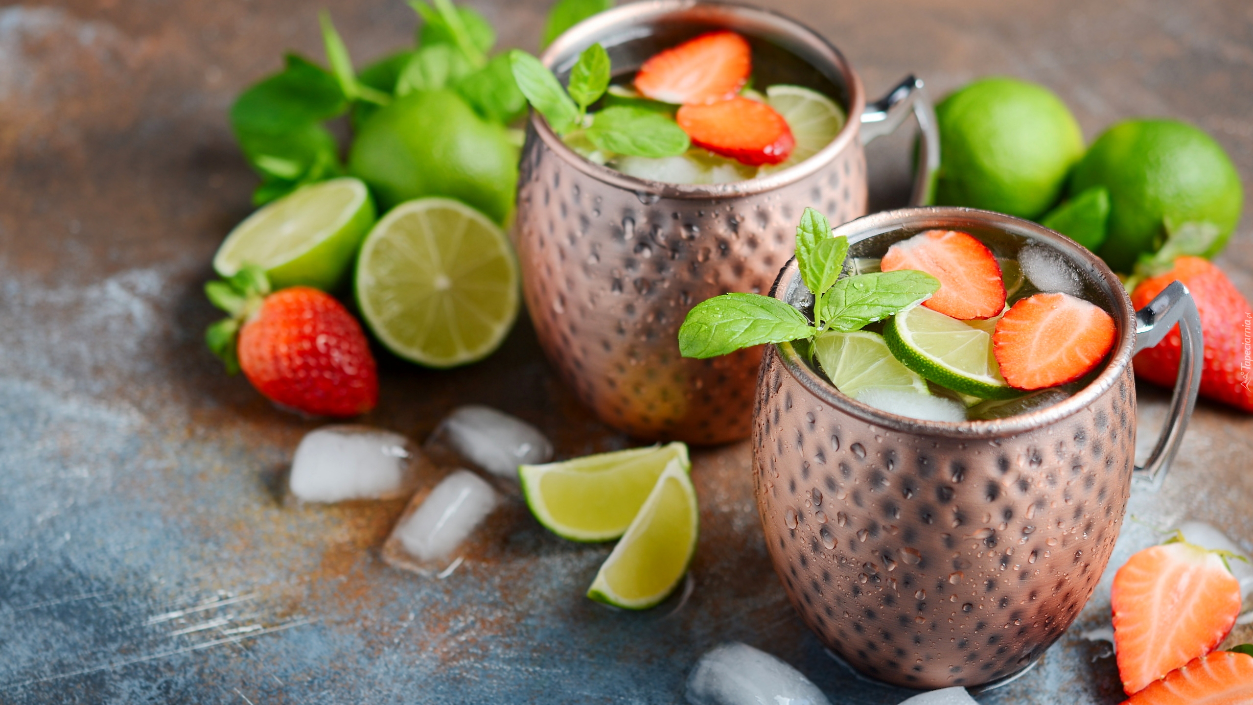 Edytor tapety: Napój w kubkach z owocami i kostkami lodu