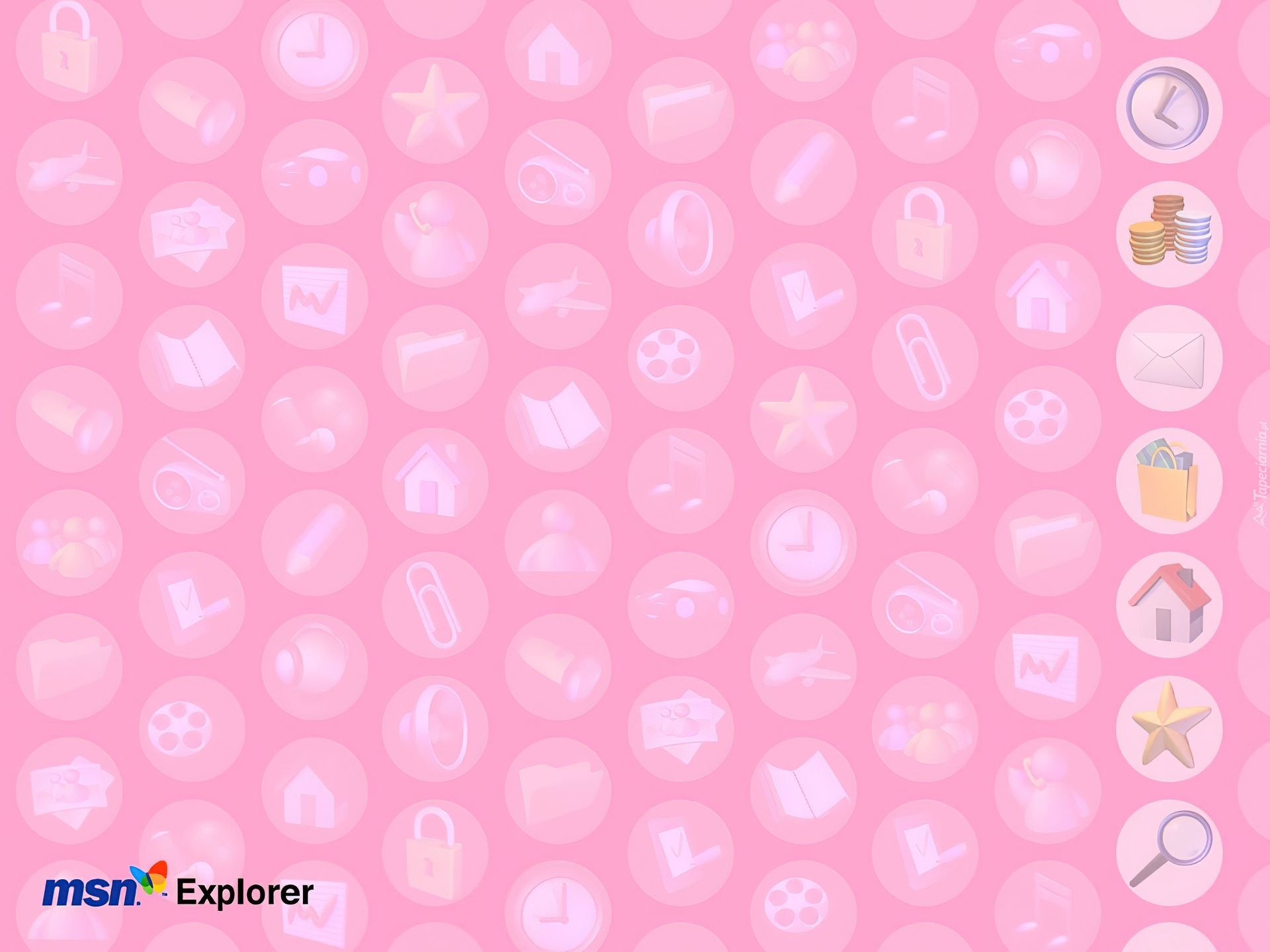 Edytor tapety: Programy MSN, logo, zegar, monety, domek