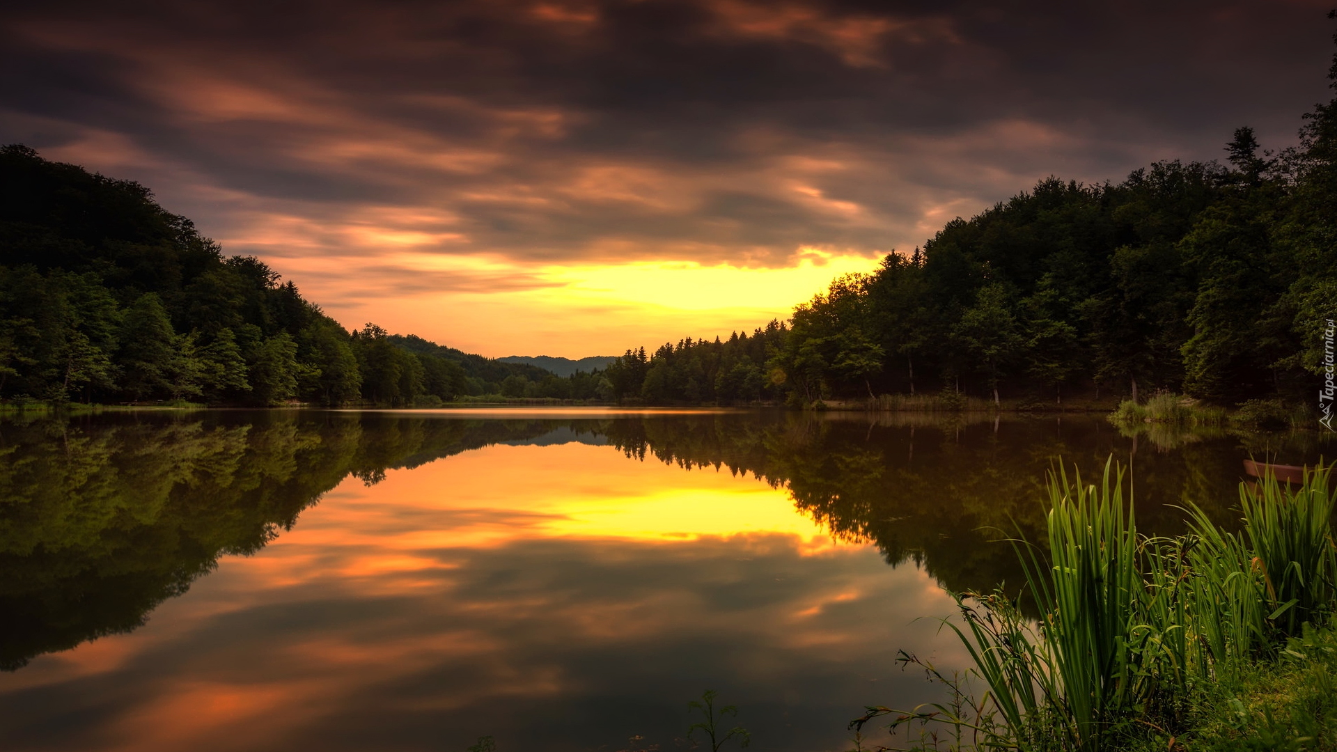 Edytor tapety: Odbicie zachodzącego słońca w jeziorze