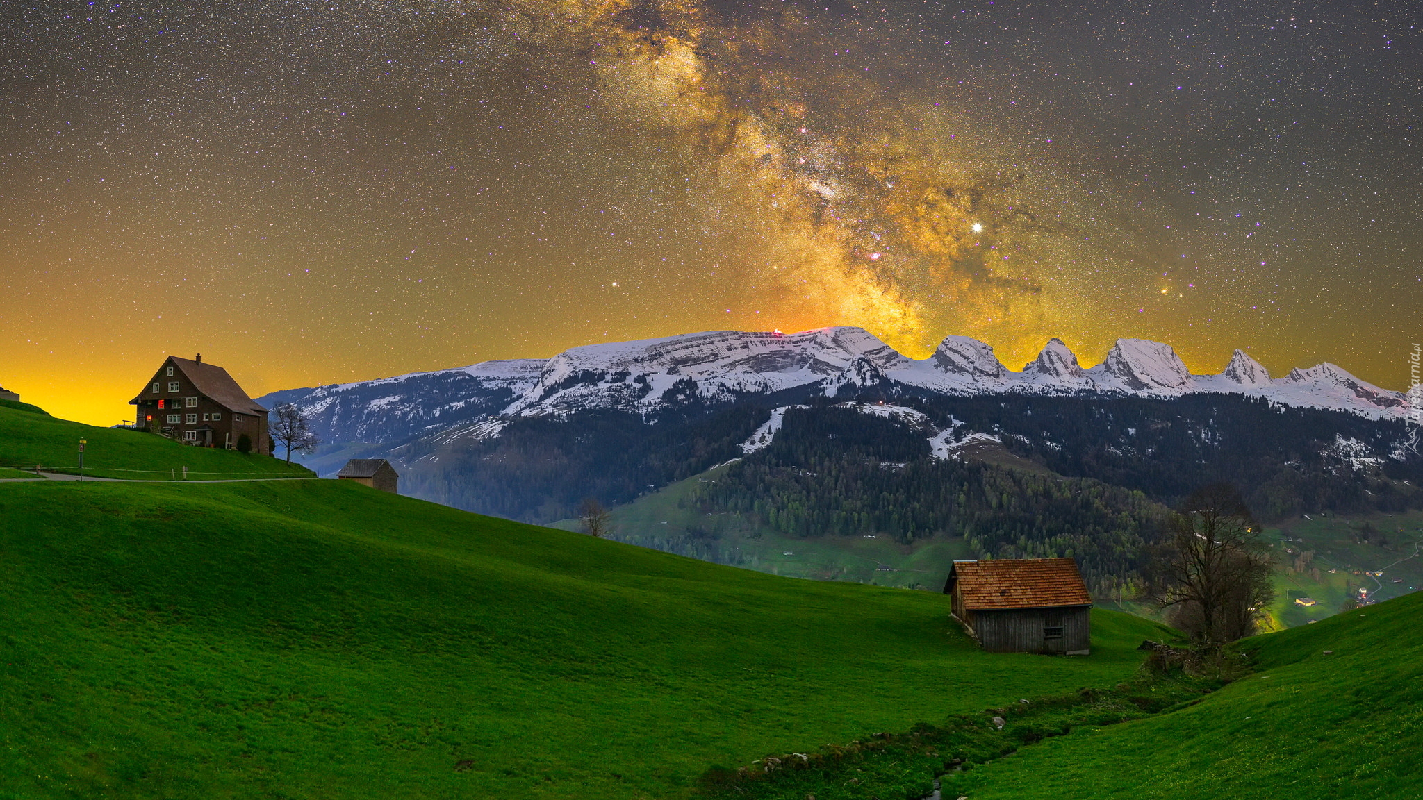 Edytor tapety: Droga mleczna nad Alpami Zachodnimi w Szwajcarii