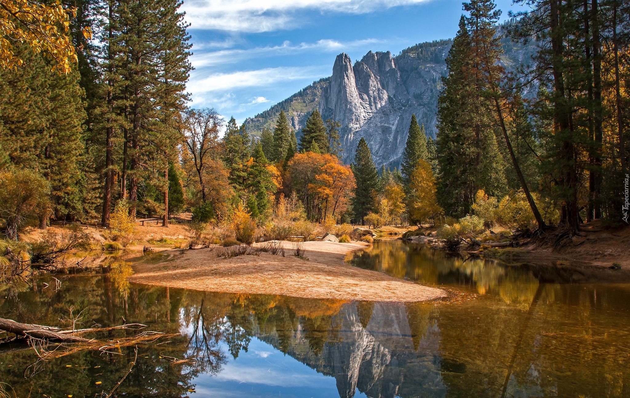 Edytor tapety: Jesienne drzewa nad jeziorem w górach