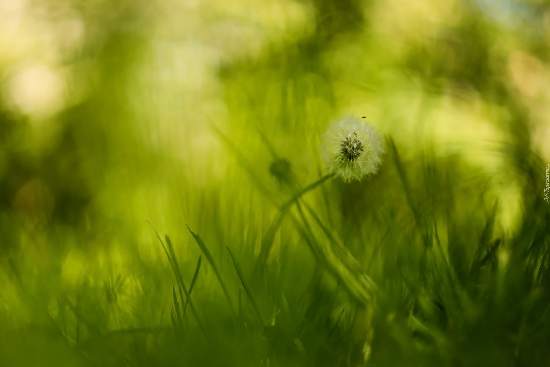Edytor tapety: Dmuchawiec w trawie na rozmytym tle