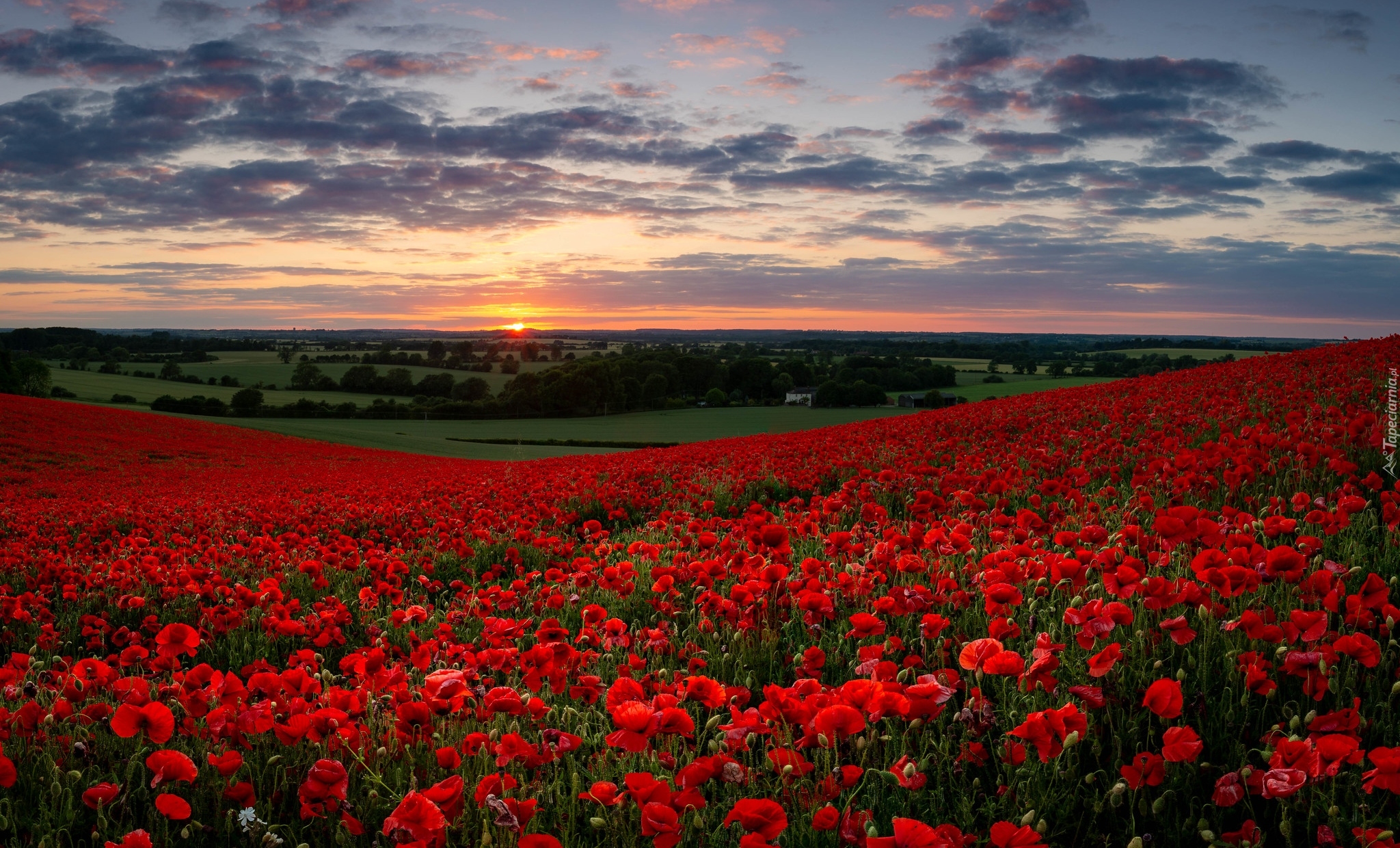Edytor tapety: Maki na polu w zachodzącym słońcu