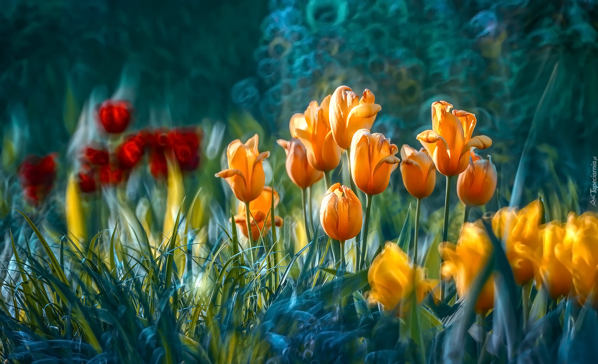 Edytor tapety: Kolorowe tulipany w rozmyciu