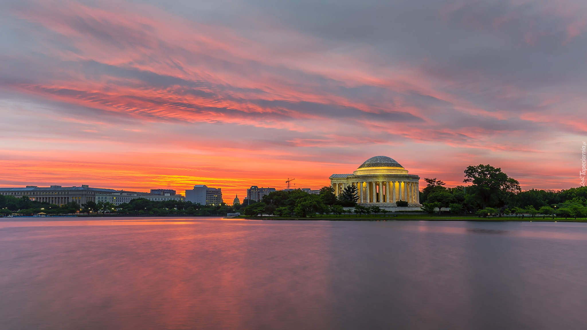 Edytor tapety: Wschód słońca nad pomnikiem Jeffersona w Waszyngtonie