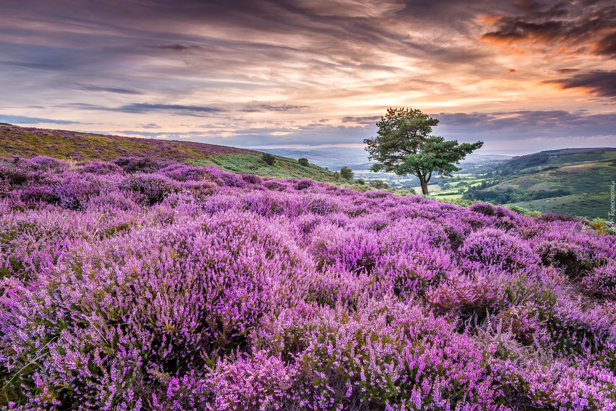 Edytor tapety: Drzewo na wrzosowym wzgórzu