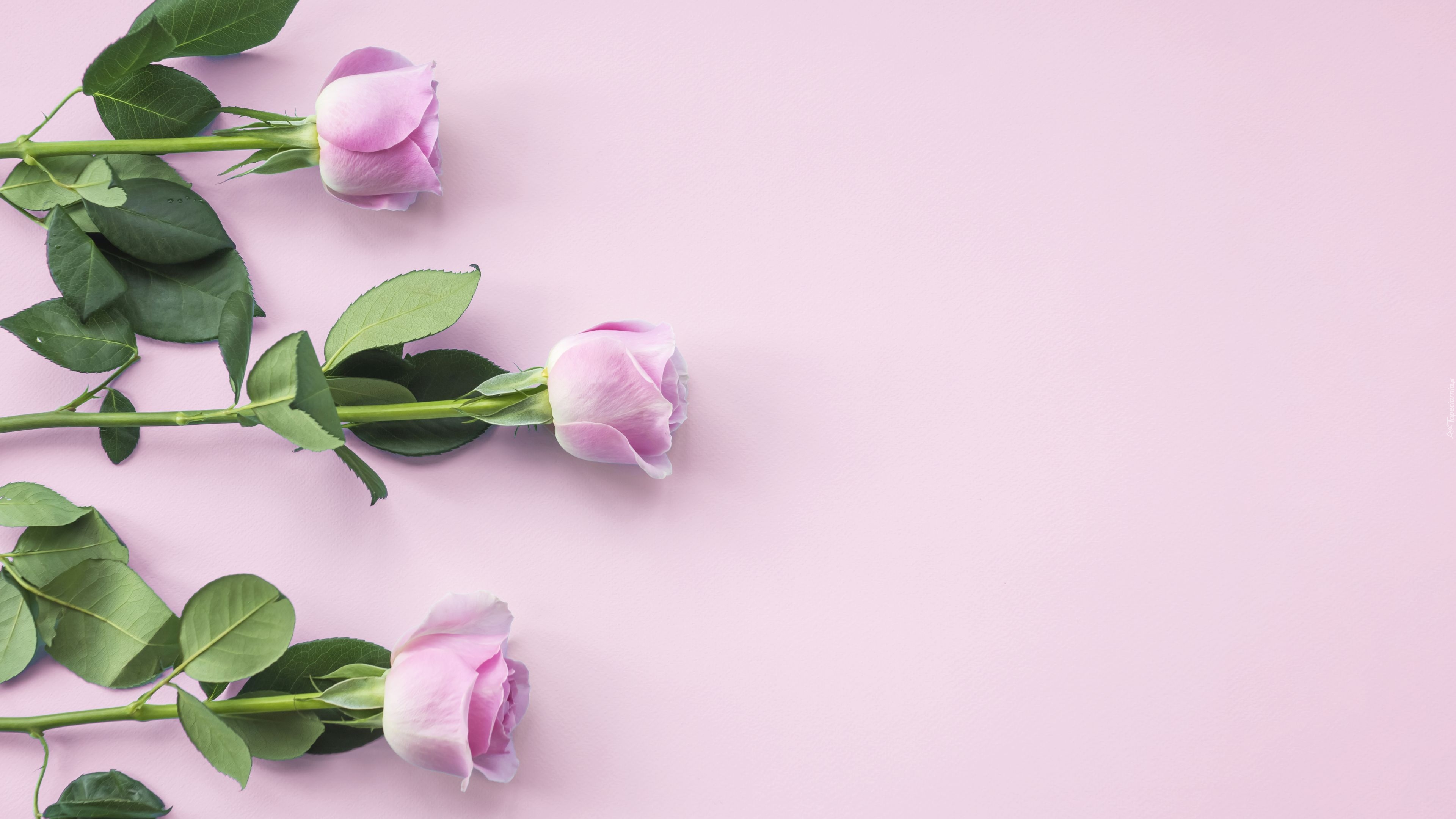 Edytor tapety: Trzy róże na różowym tle