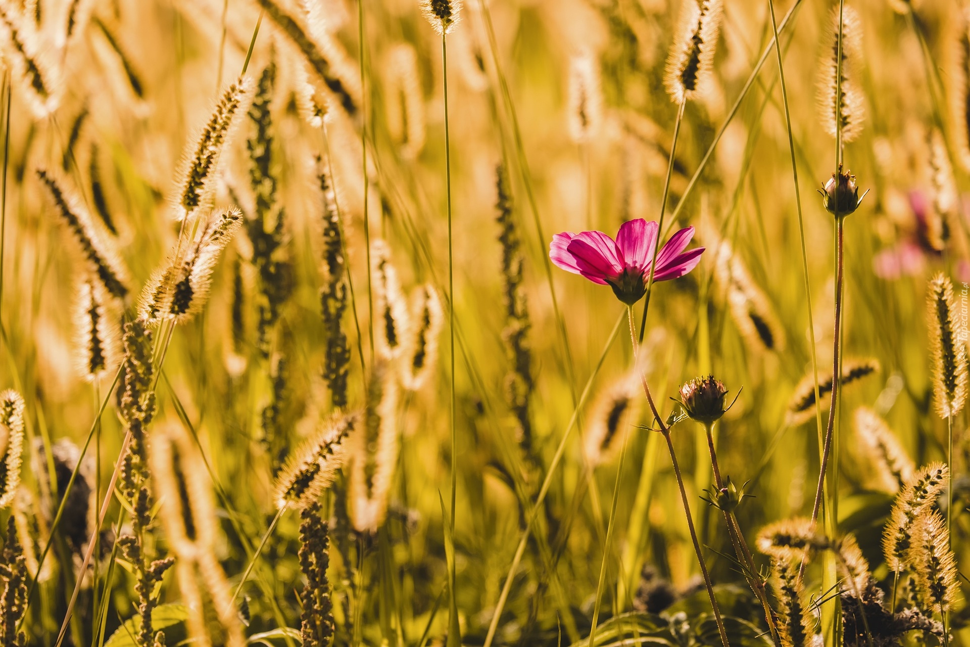 Edytor tapety: Kwiat kosmei wśród kłosów