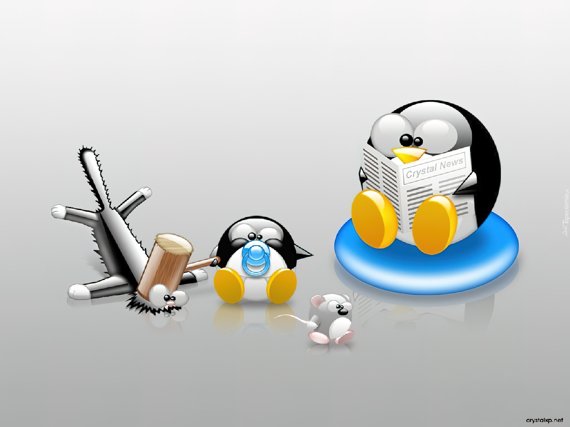 Edytor tapety: Linux, pingwin, kot, mysz, smoczek, młotek