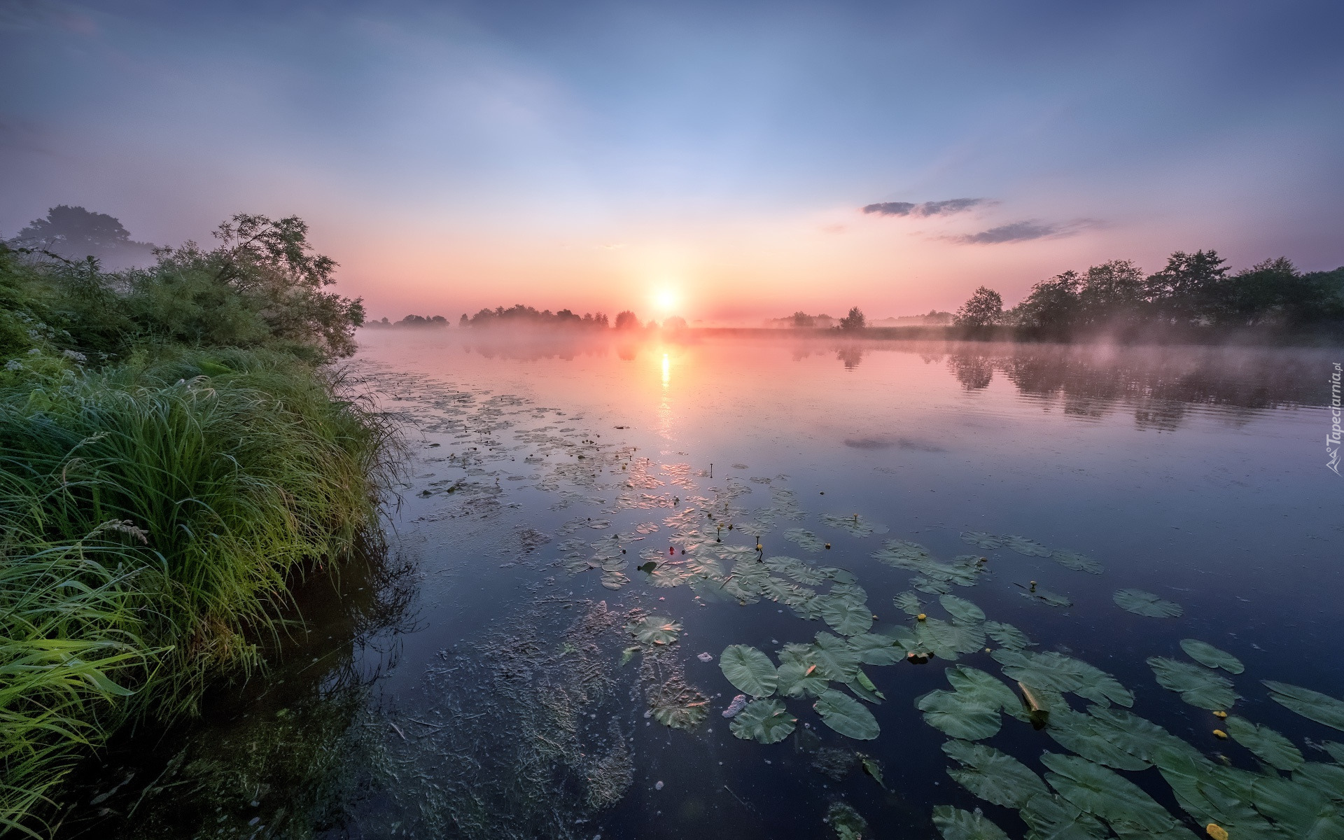 Edytor tapety: Liście lilii wodnych na łotewskiej rzece Dubna