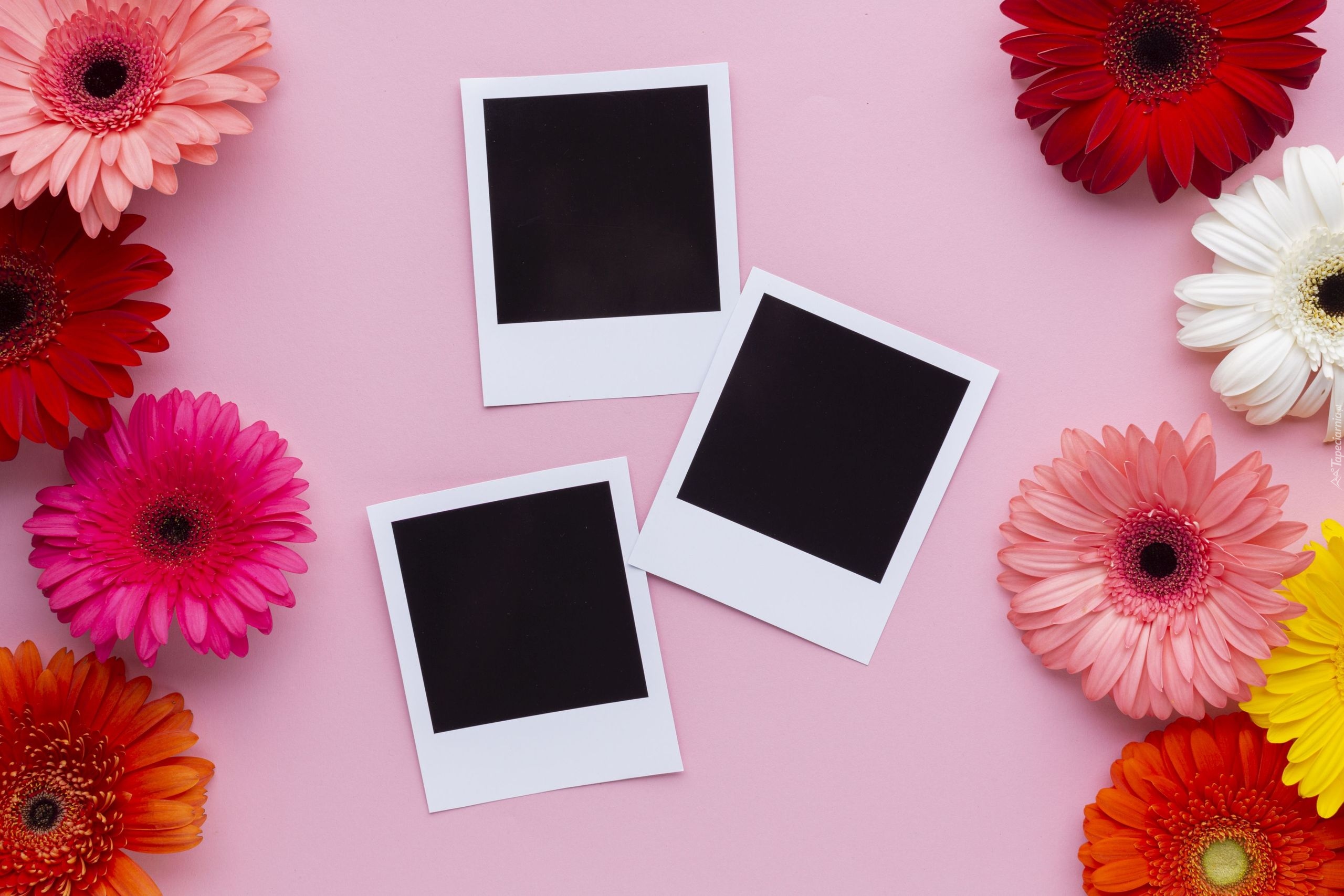 Edytor tapety: Kolorowe gerbery wokół klisz fotograficznych