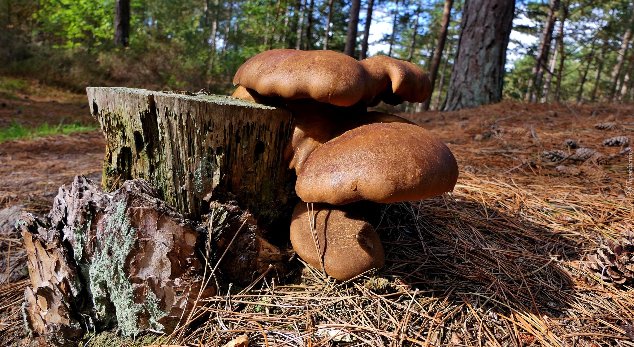 Edytor tapety: Grzyby obok pnia drzewa w lesie