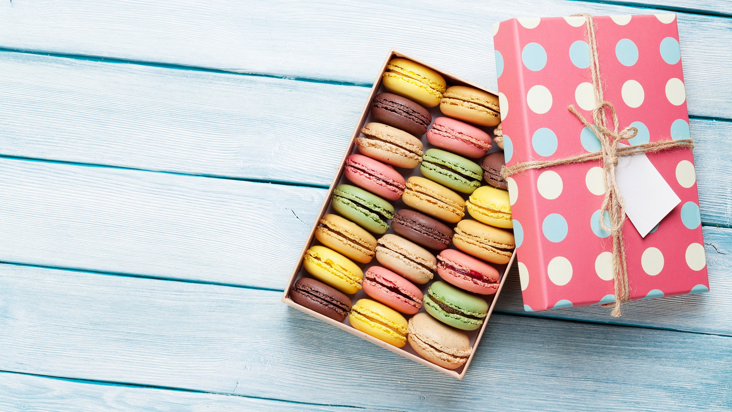 Edytor tapety: Kolorowe makaroniki w pudełku