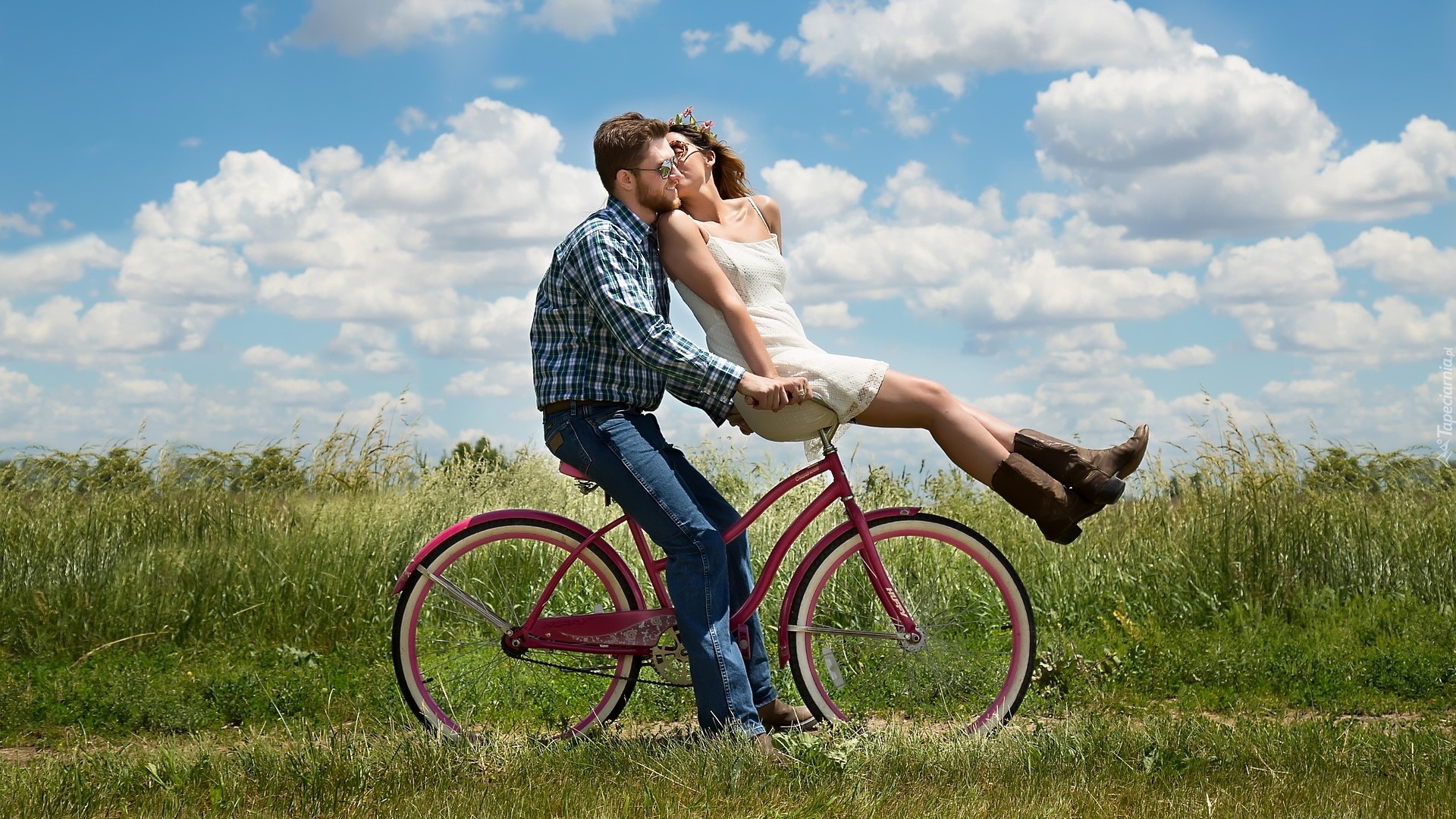 Edytor tapety: Dziewczyna i chłopak na rowerze