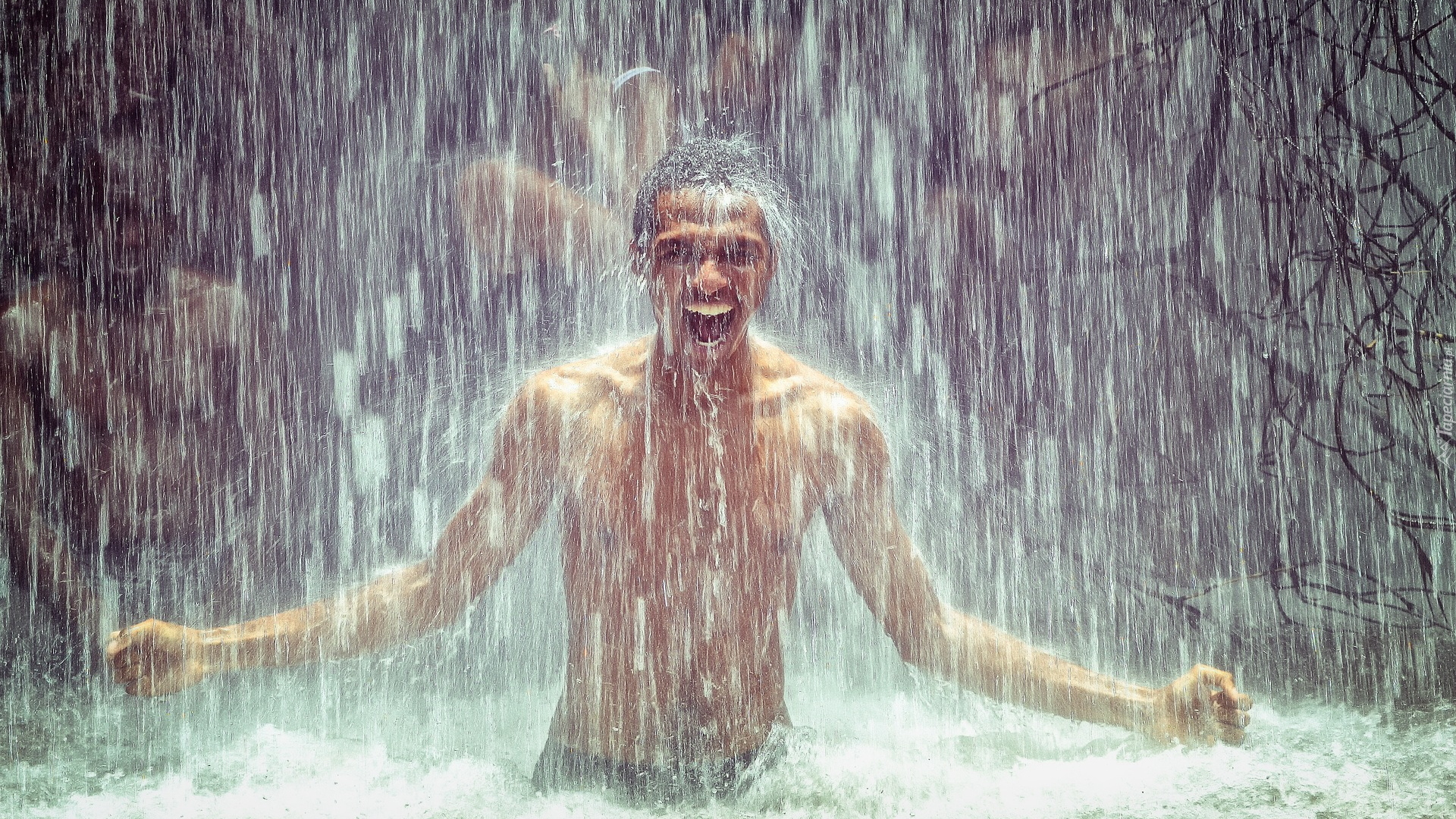 Edytor tapety: Chłopak pod wodospadem