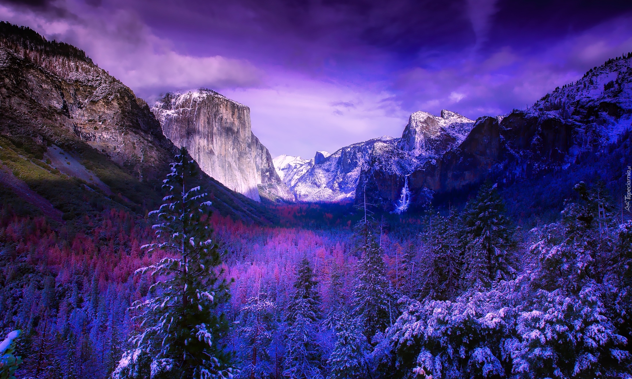 Edytor tapety: Zimowy krajobraz Parku Narodowego Yosemite w Kaliforni