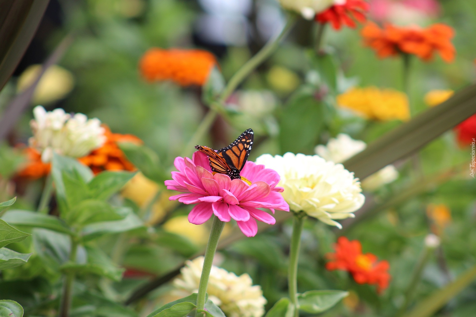 Edytor tapety: Danaid wędrowny na cynii