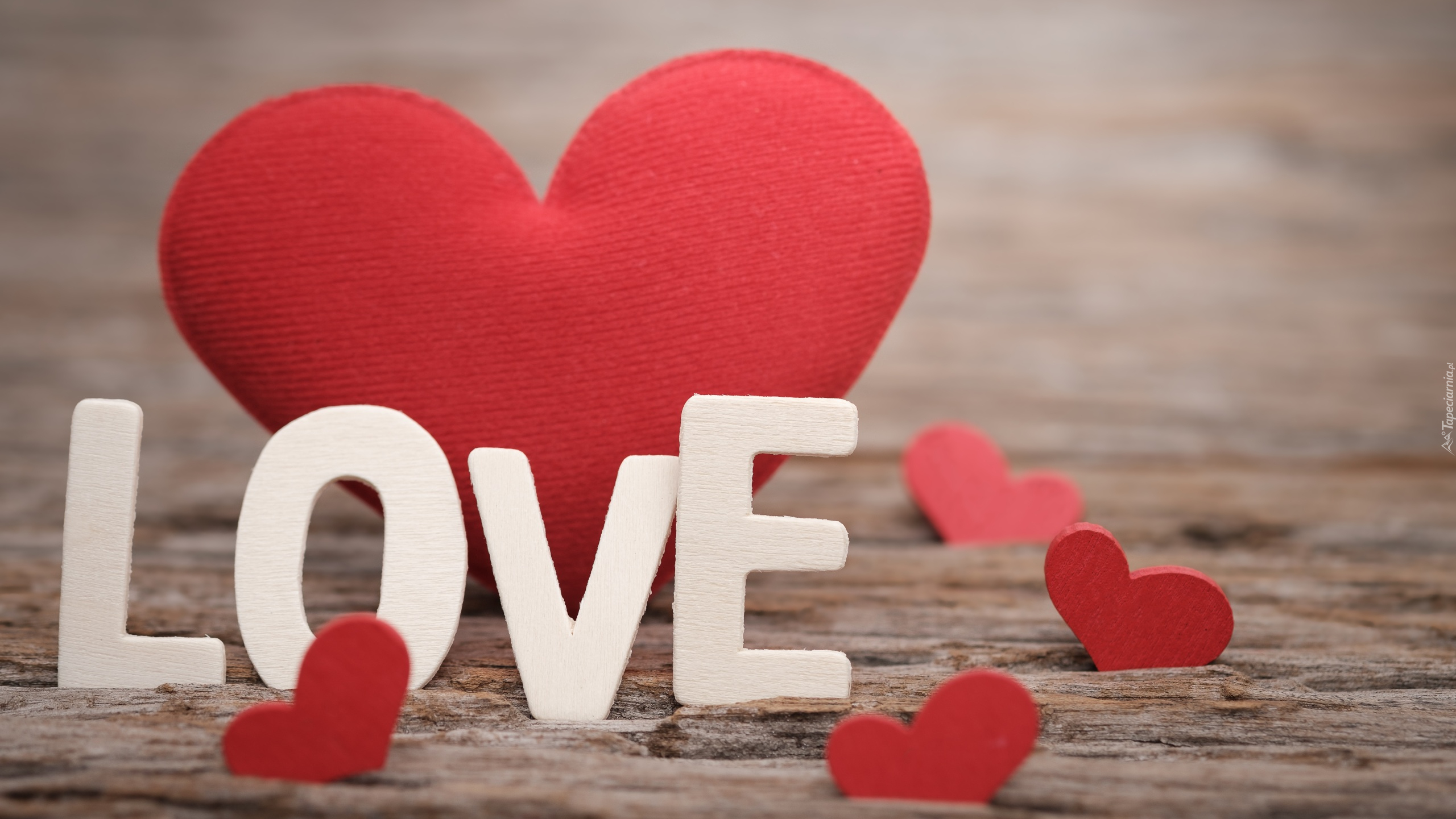 Edytor tapety: Napis Love obok serduszek