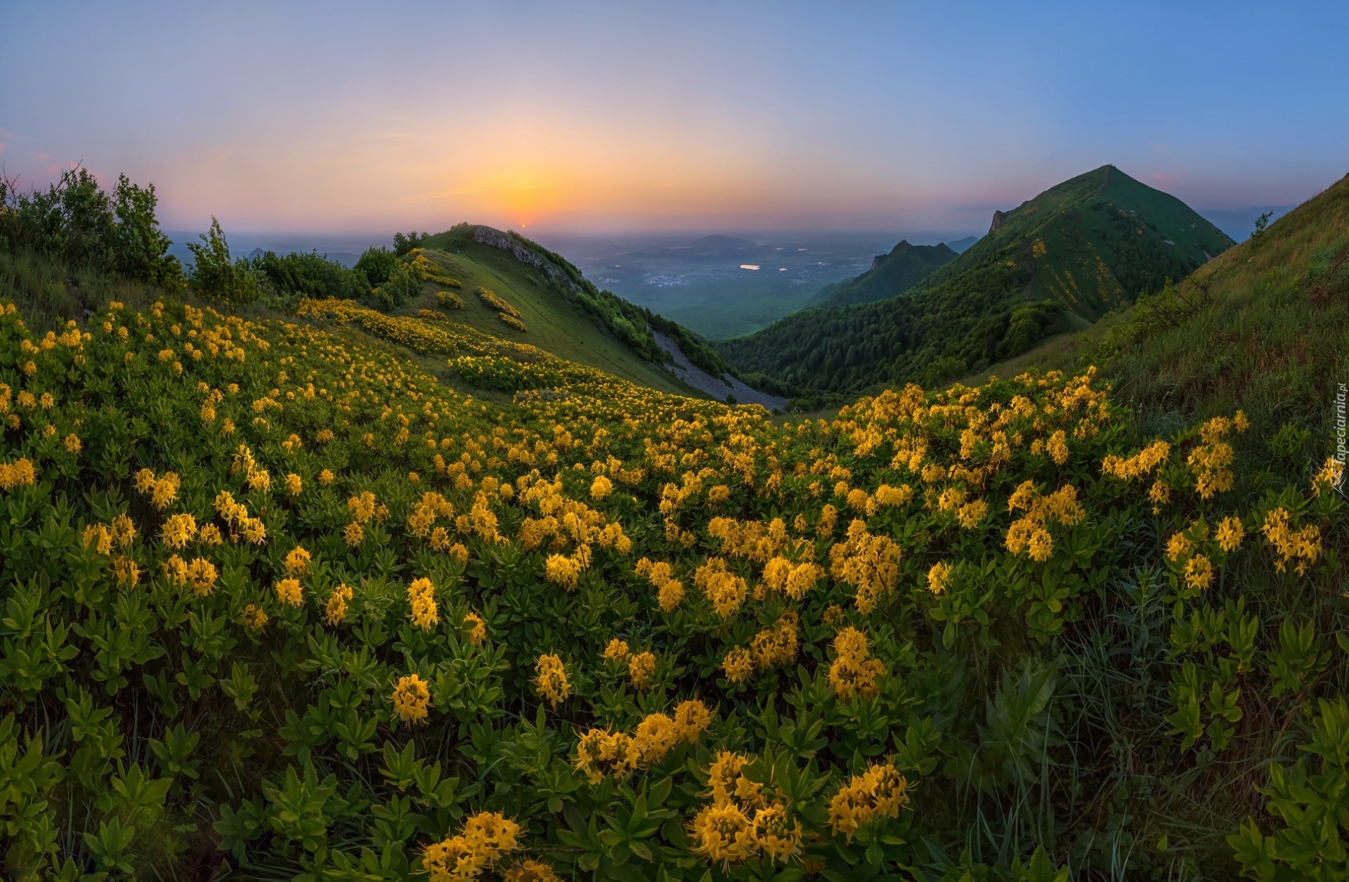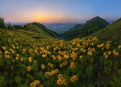 Edytor tapety: Żółte kwiaty na górskiej łące