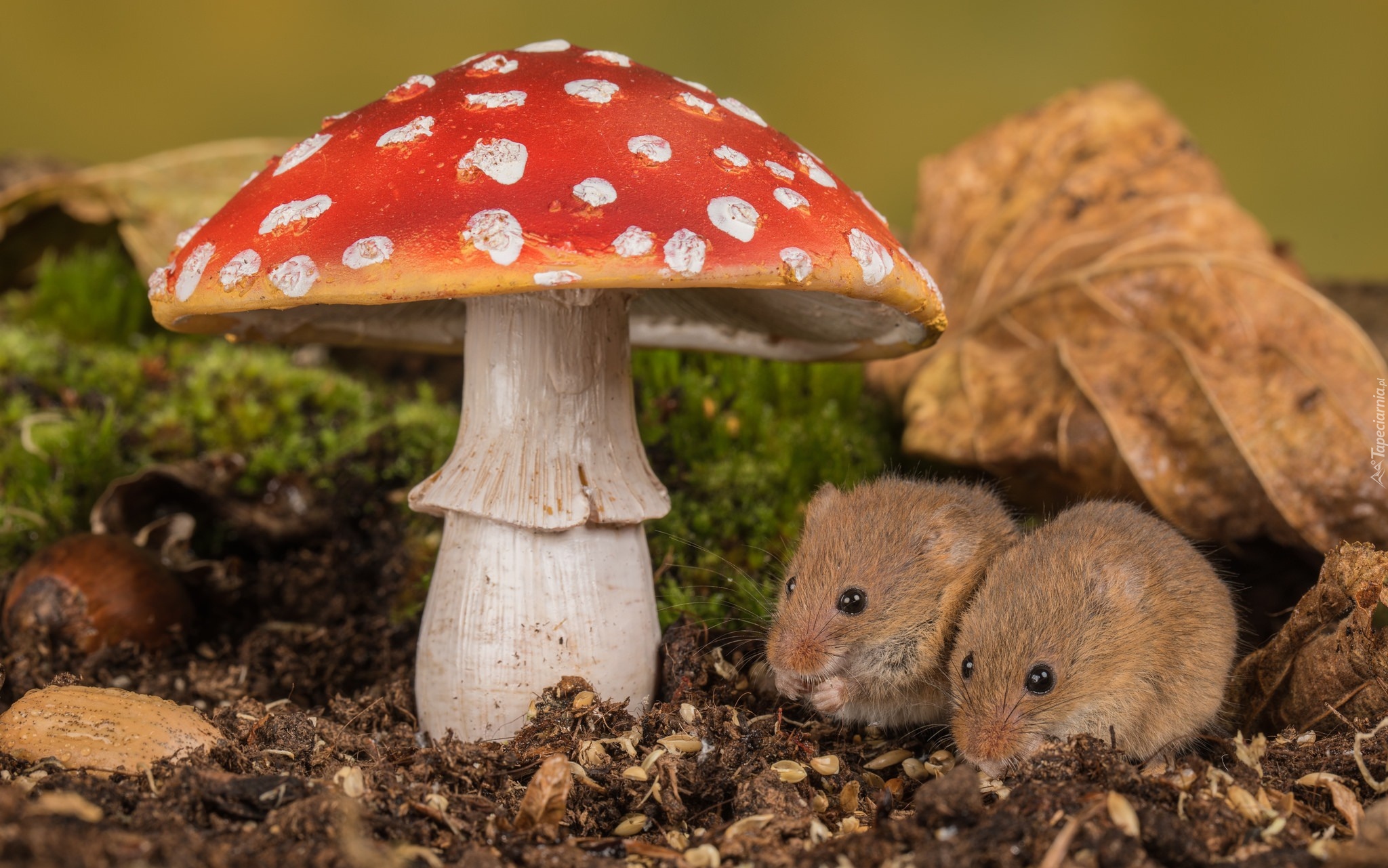 Edytor tapety: Para myszek pod muchomorem