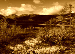 Edytor tapety: Jesienne drzewa i krzewy nad jeziorem Jacka Londona