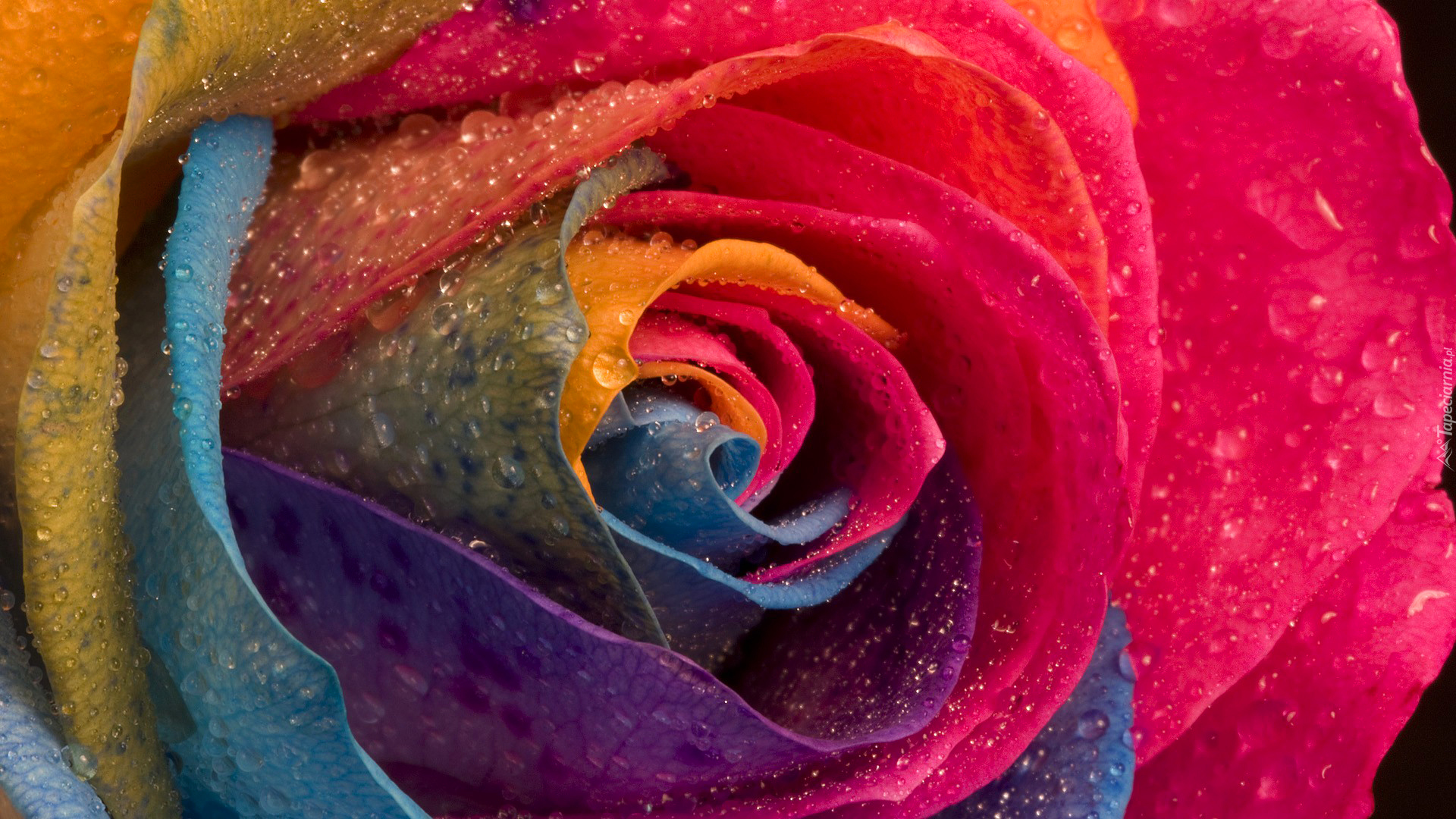 Edytor tapety: Krople wody na kolorowej róży