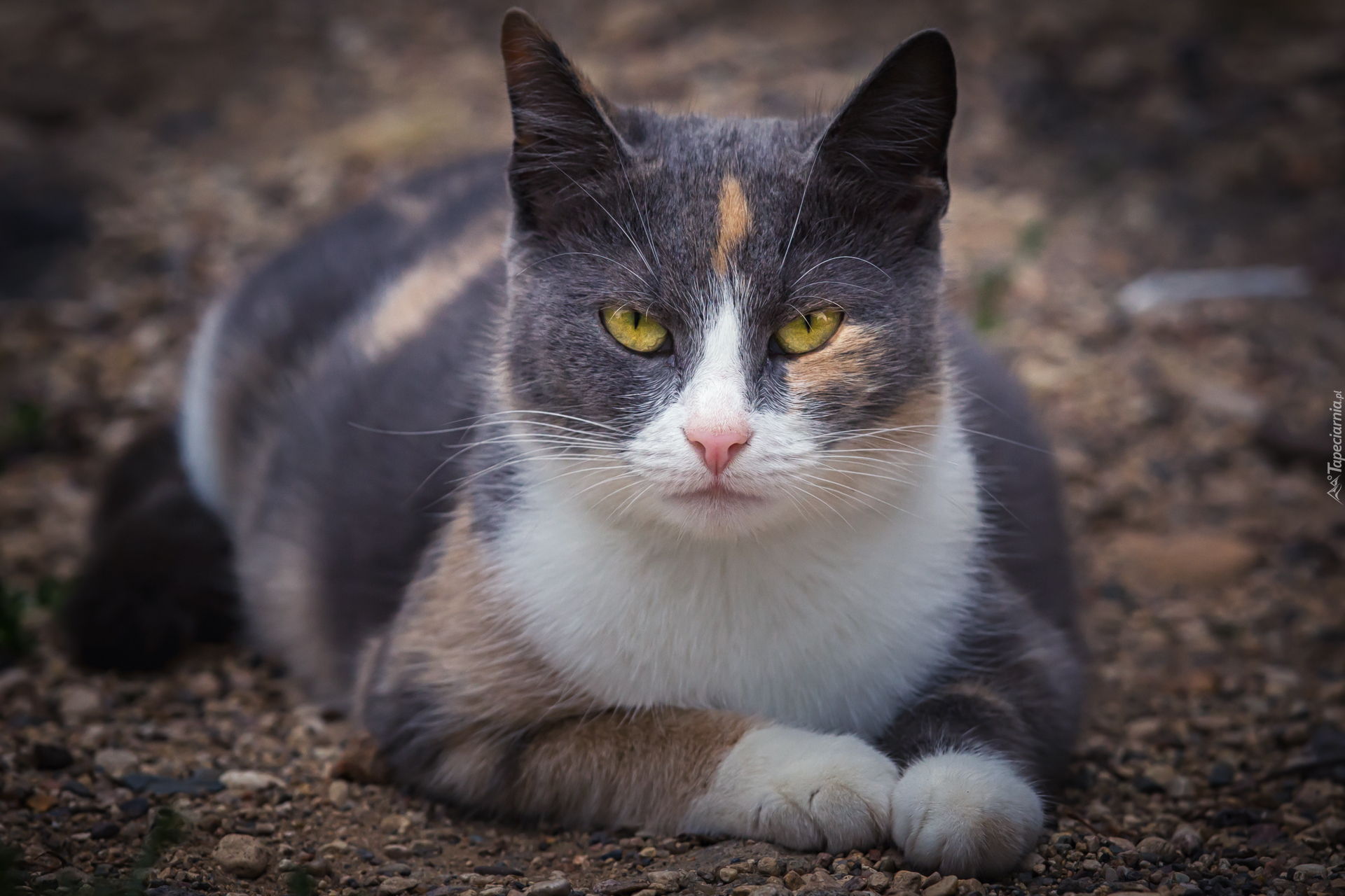 Edytor tapety: Łaciaty kot z żółtymi oczami