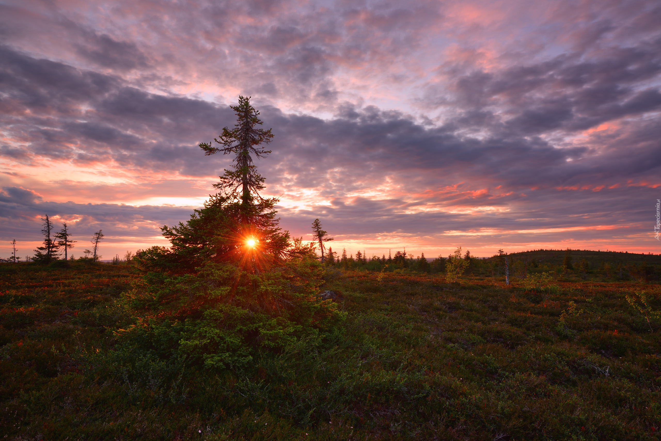 Edytor tapety: Drzewa w zachodzącym słońcu