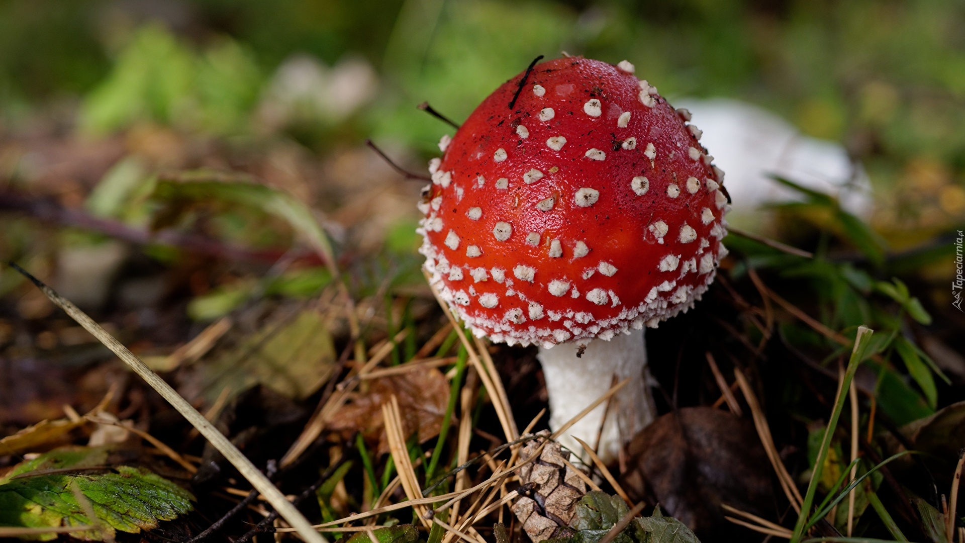 Edytor tapety: Muchomor w ściółce leśnej