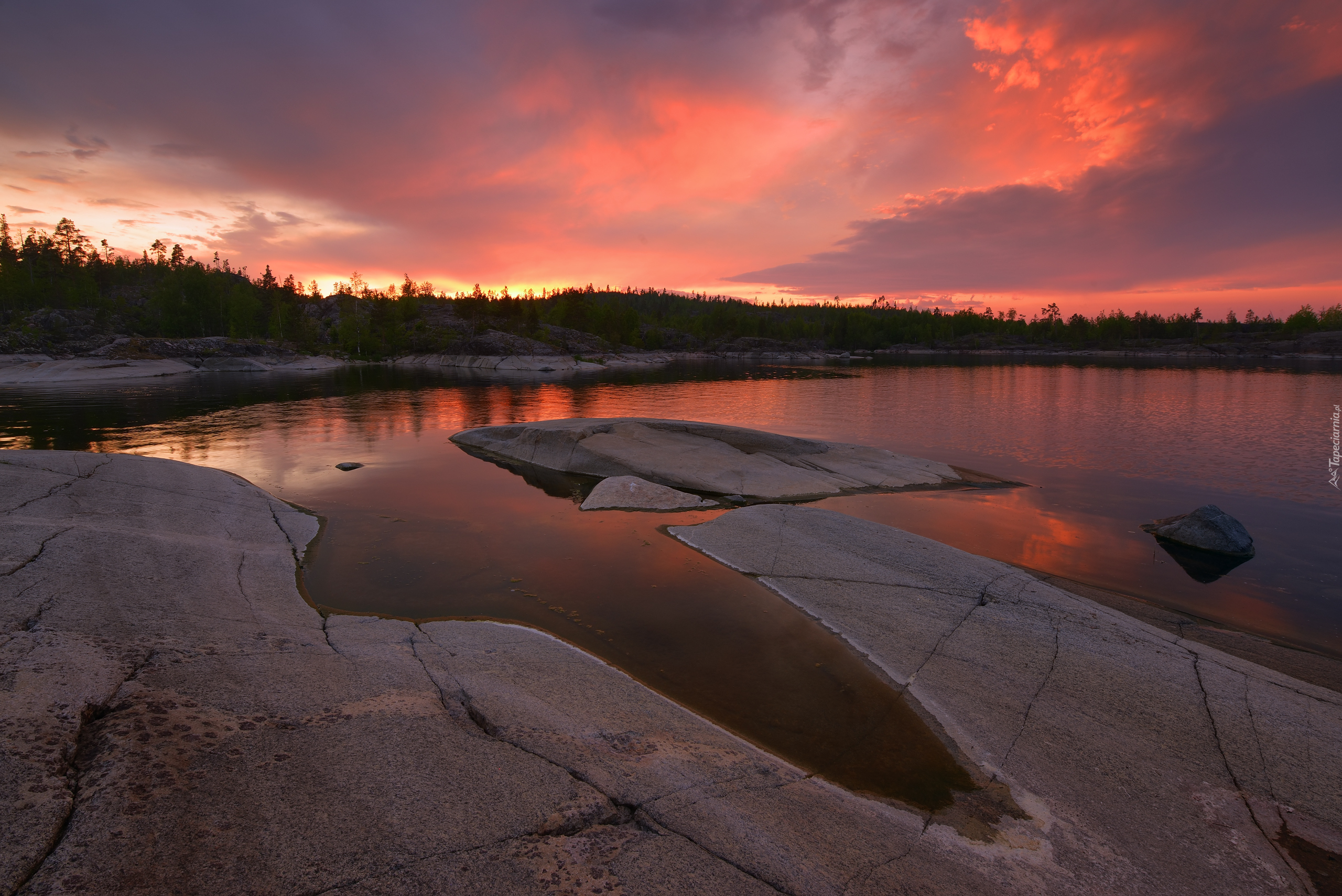 Edytor tapety: Zachód słońca nad jeziorem Ładoga