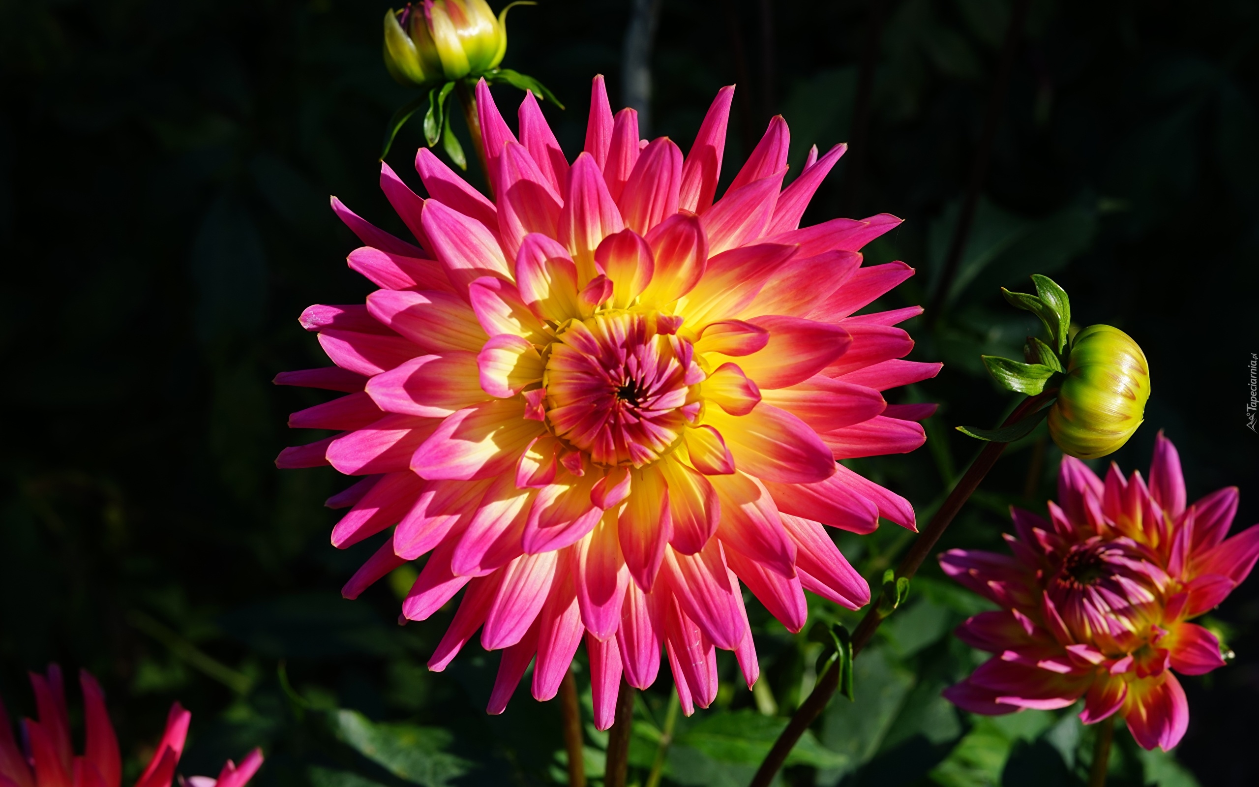 Edytor tapety: Różowa dalia z pąkami na czarnym tle