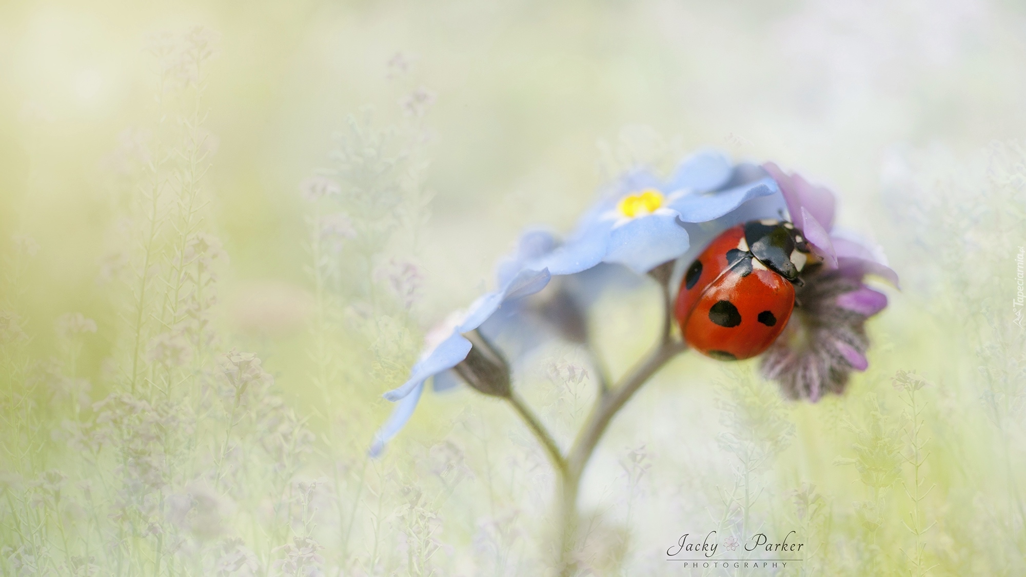 Edytor tapety: Biedronka na niezapominajce