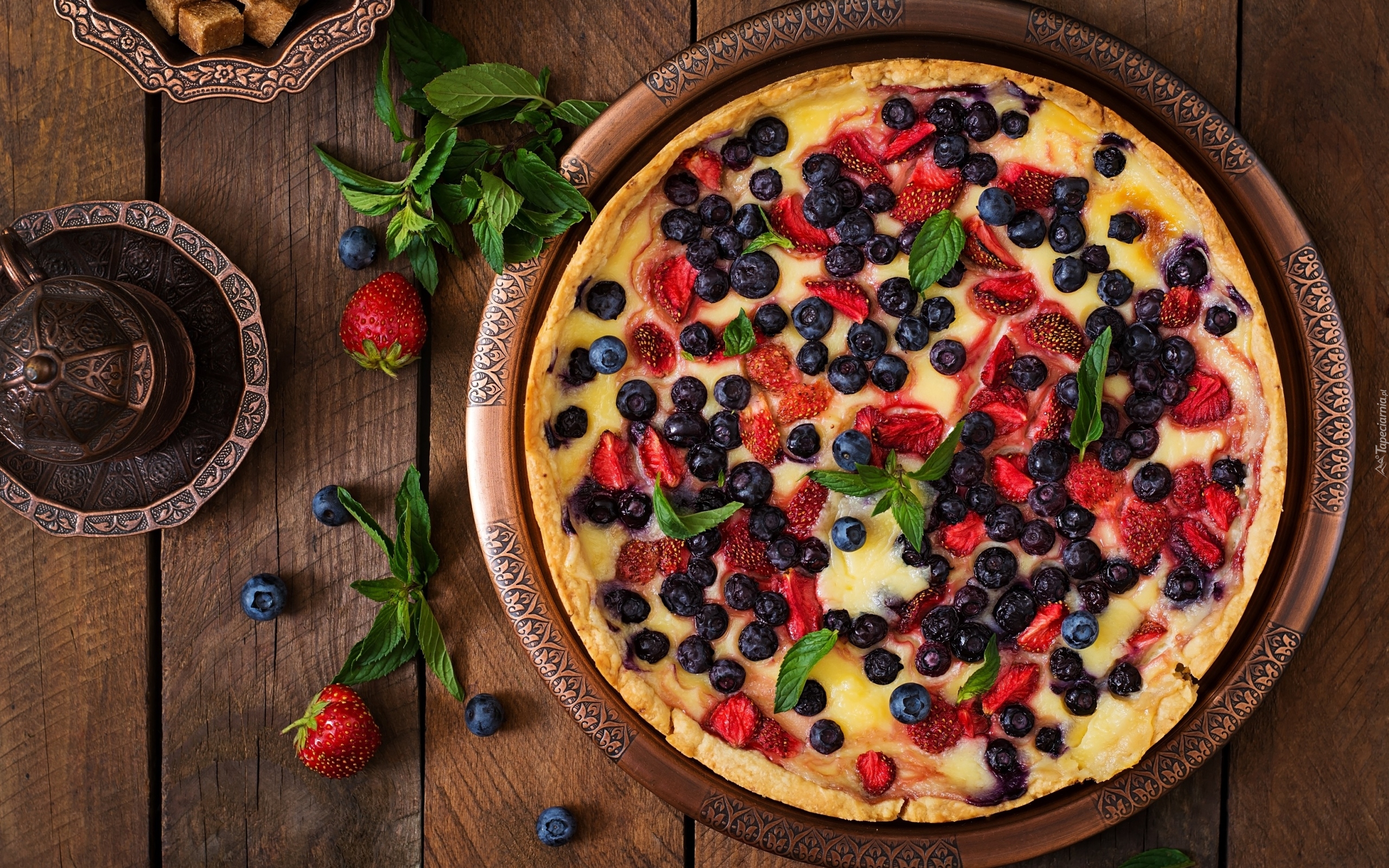 Edytor tapety: Ciasto owocowe z truskawkami i jagodami