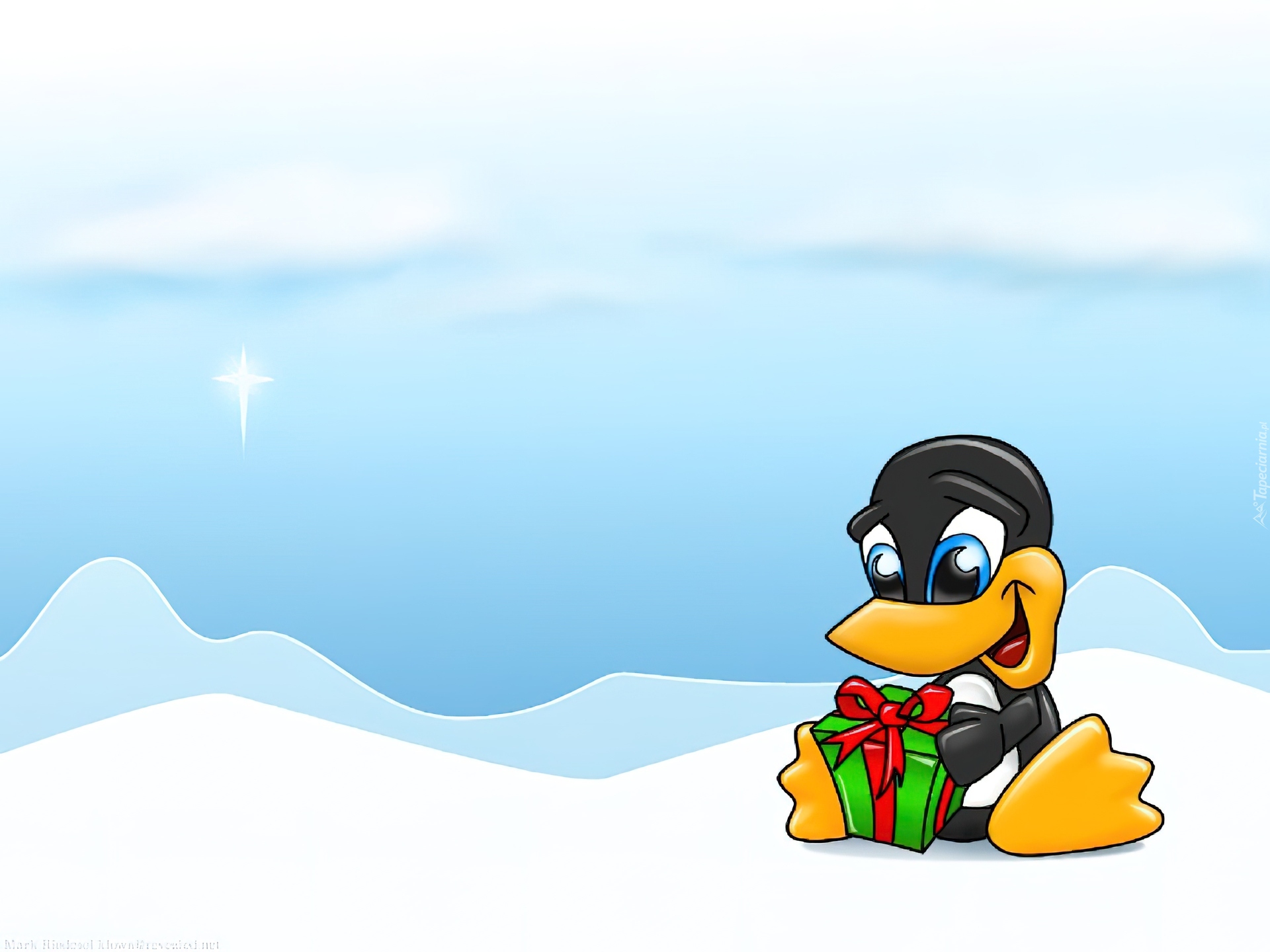Edytor tapety: pingwin, prezent, Linux, grafika