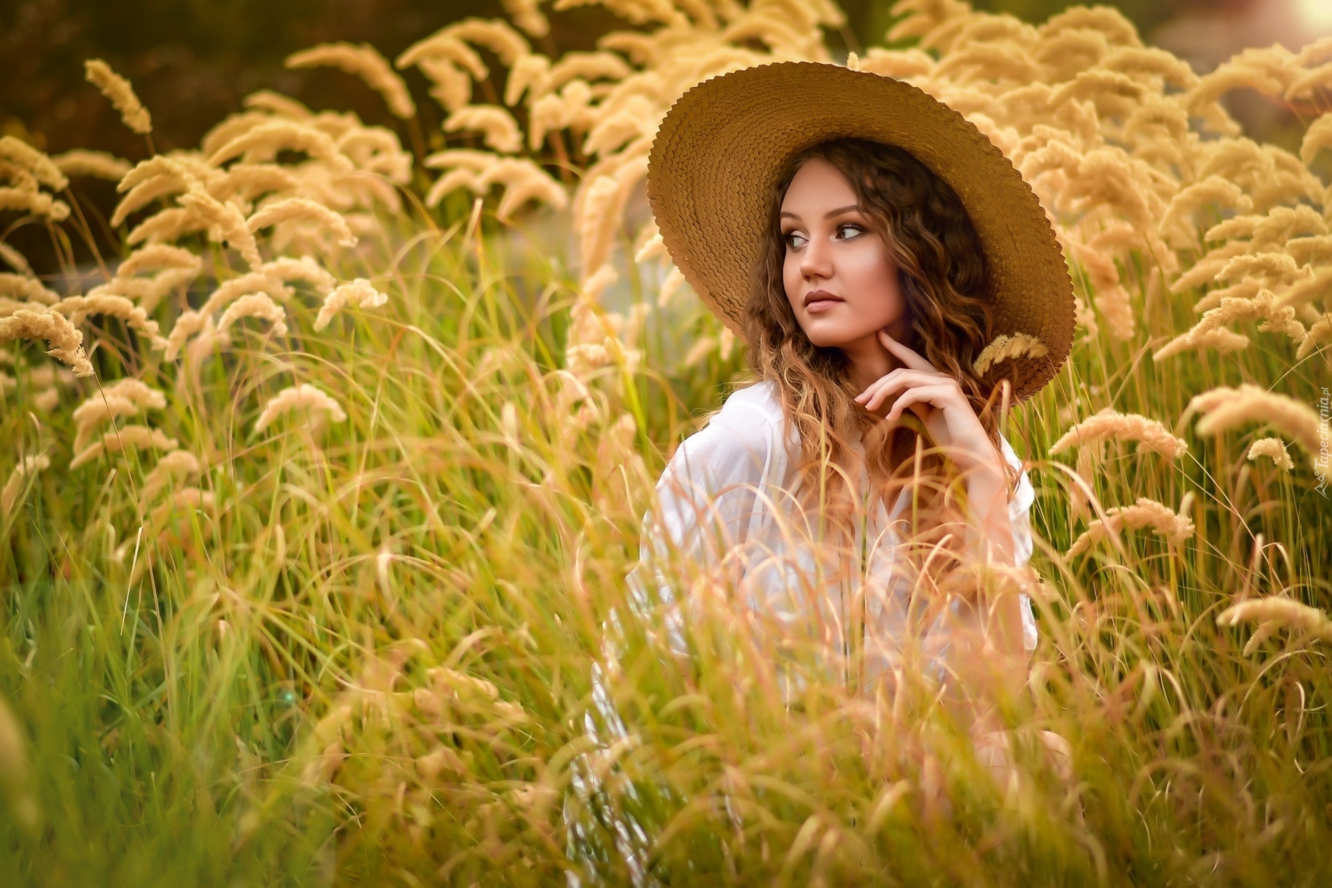 Edytor tapety: Kobieta w kapeluszu wśród wysokich traw