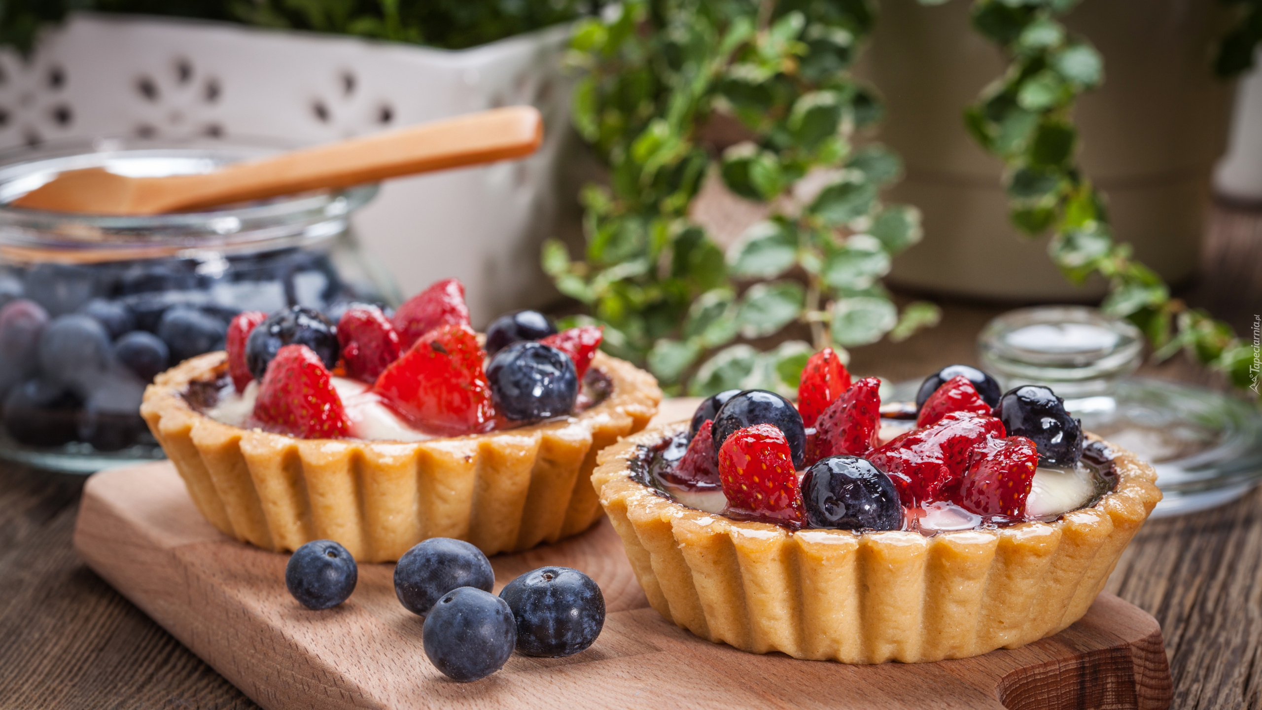 Edytor tapety: Dwie babeczki z truskawkami i borówkami