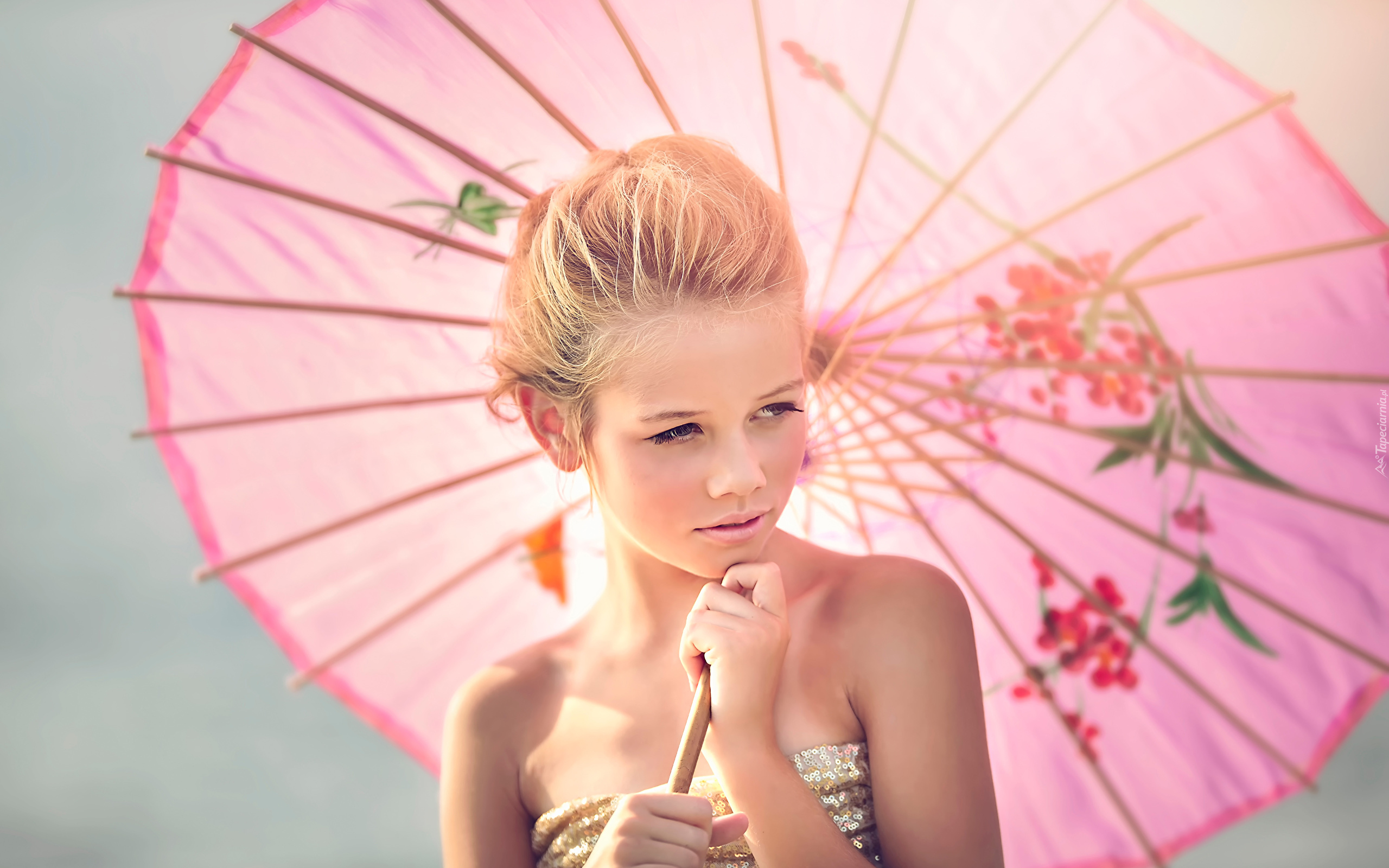 Edytor tapety: Blondynka z różową parasolką