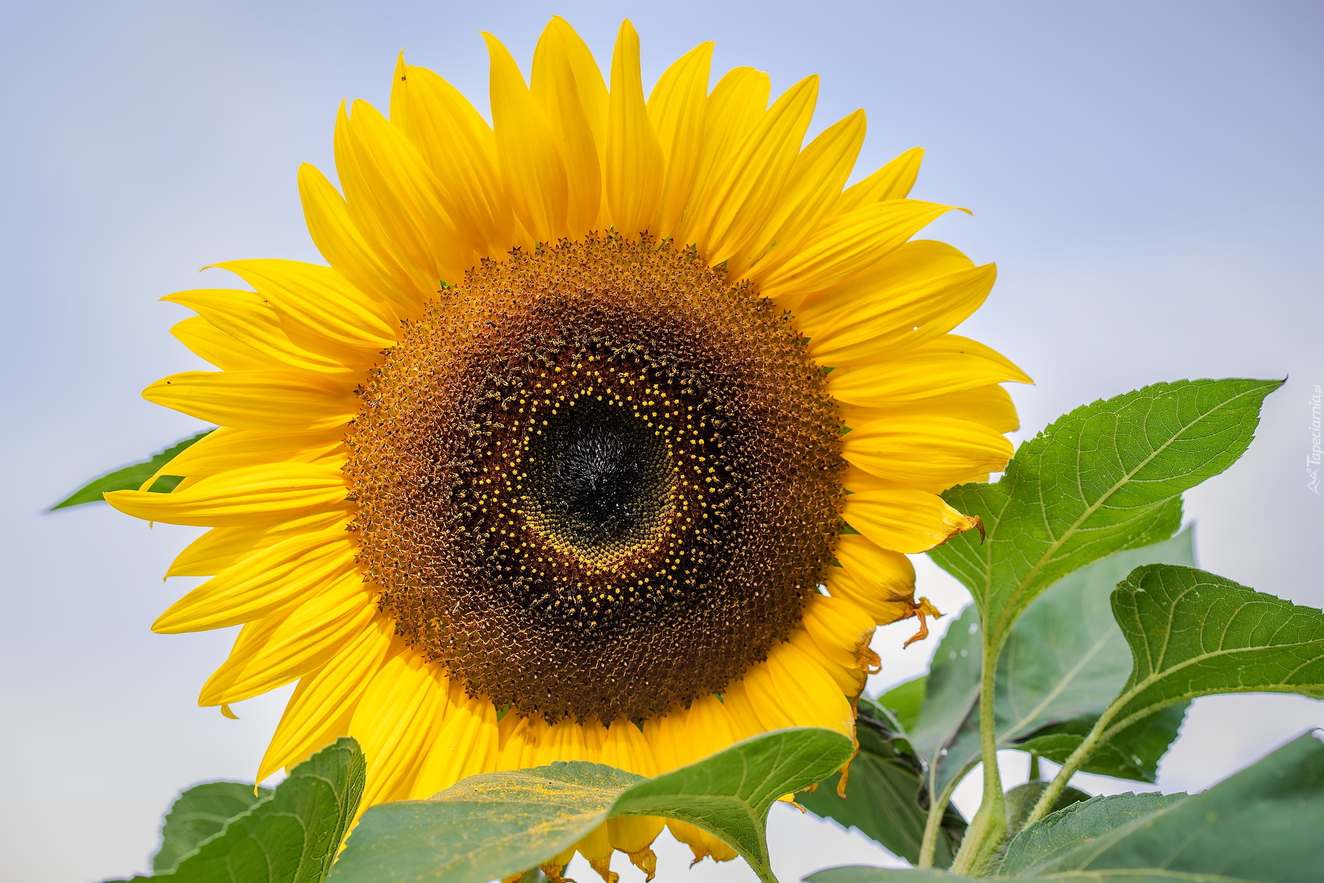 Edytor tapety: Rozkwitnięty słonecznik na tle nieba