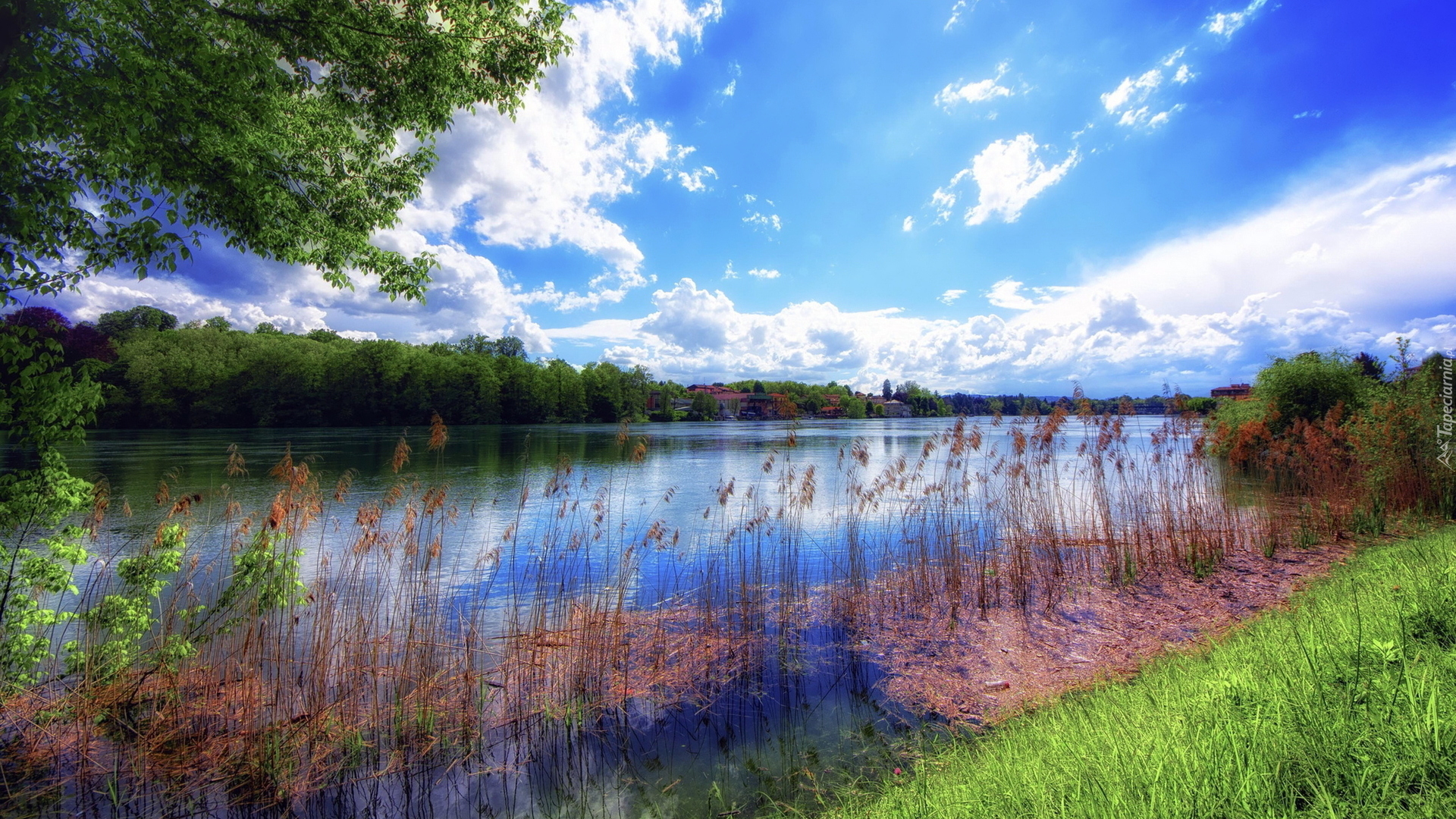 Edytor tapety: Wysoka trawa przy brzegu rzeki