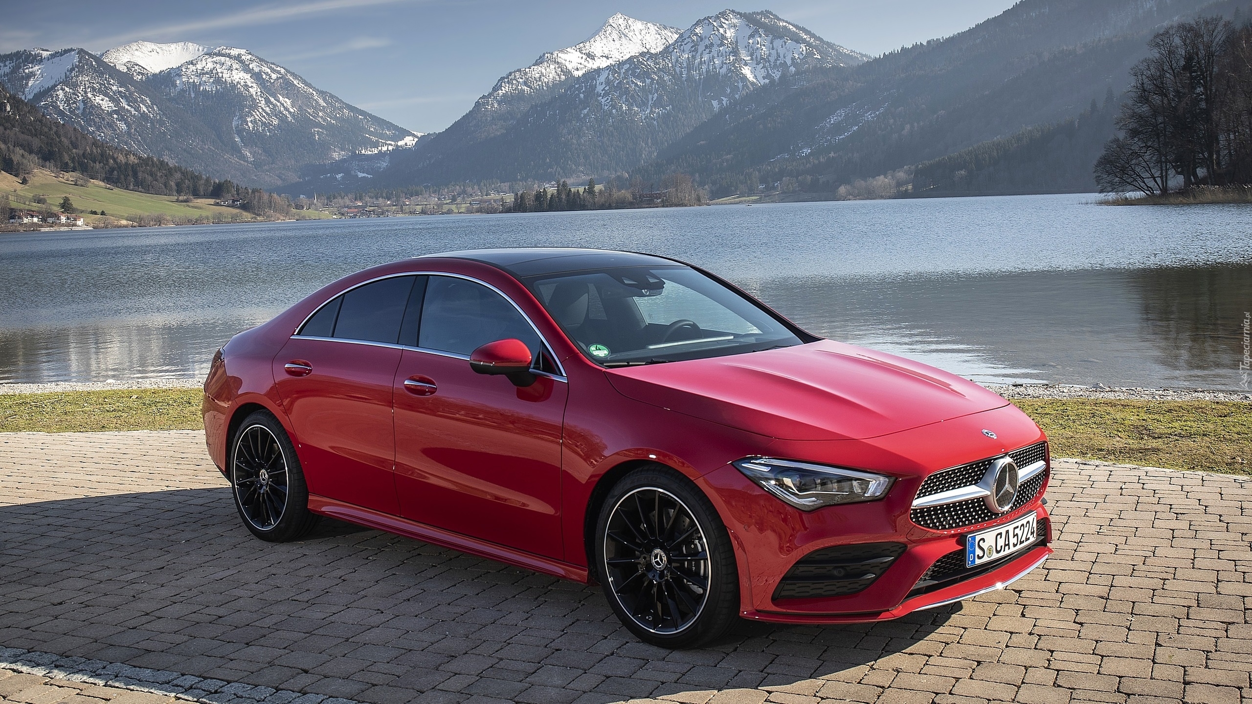 Edytor tapety: Czerwony Mercedes-Benz CLA w górach